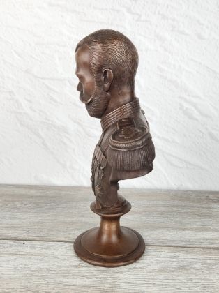 Крупный бюст Александра III ( (23.5см) очень хорошего качества. Даже по фотографиям можно оценить качество данного бюста. Отмечаем тщательную, детальную проработку каждого элемента.