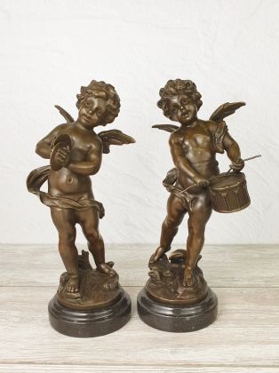 Представляем авторскую серию, изображающую амурчиков - музыкантов. Несмотря на небольшие размеры (15см) обращает на себя внимание качественная, тщательная проработка мелких деталей работы. Каждый амурчик играет на своём музыкальном инструменте.