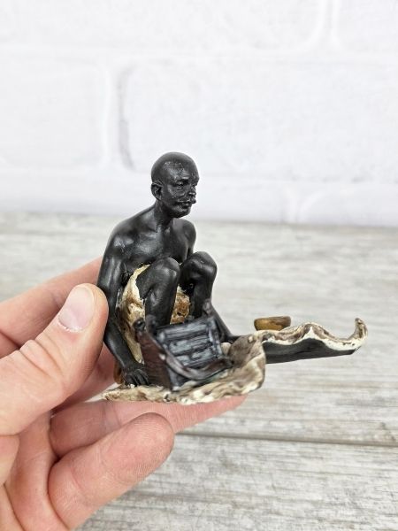 Представленная работа является характерным образцом венской декоративной бронзы начала XX века. Фигурка изображает сцену в арабской парикмахерской: цирюльник бреет голову мужчине.