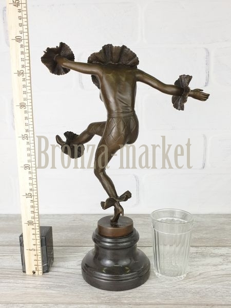 A.Titze - талантливый австрийский скульптор, считался одним из главных представителей театрализованного направления в скульптуре, изображающей актрис,танцовщиц театров и мюзиклов своего времени. В своём произведении автор особо подчёркивает великолепие костюма девушки, особой изюминкой которого являются удивительно красивые манжеты и воротник. Арлекин весел и наивен и в то же время его невзгоды и горести вызывают сочувствие. Яркий, запоминающийся образ, будет замечательным подарком и прекрасным дополнением к интерьеру.