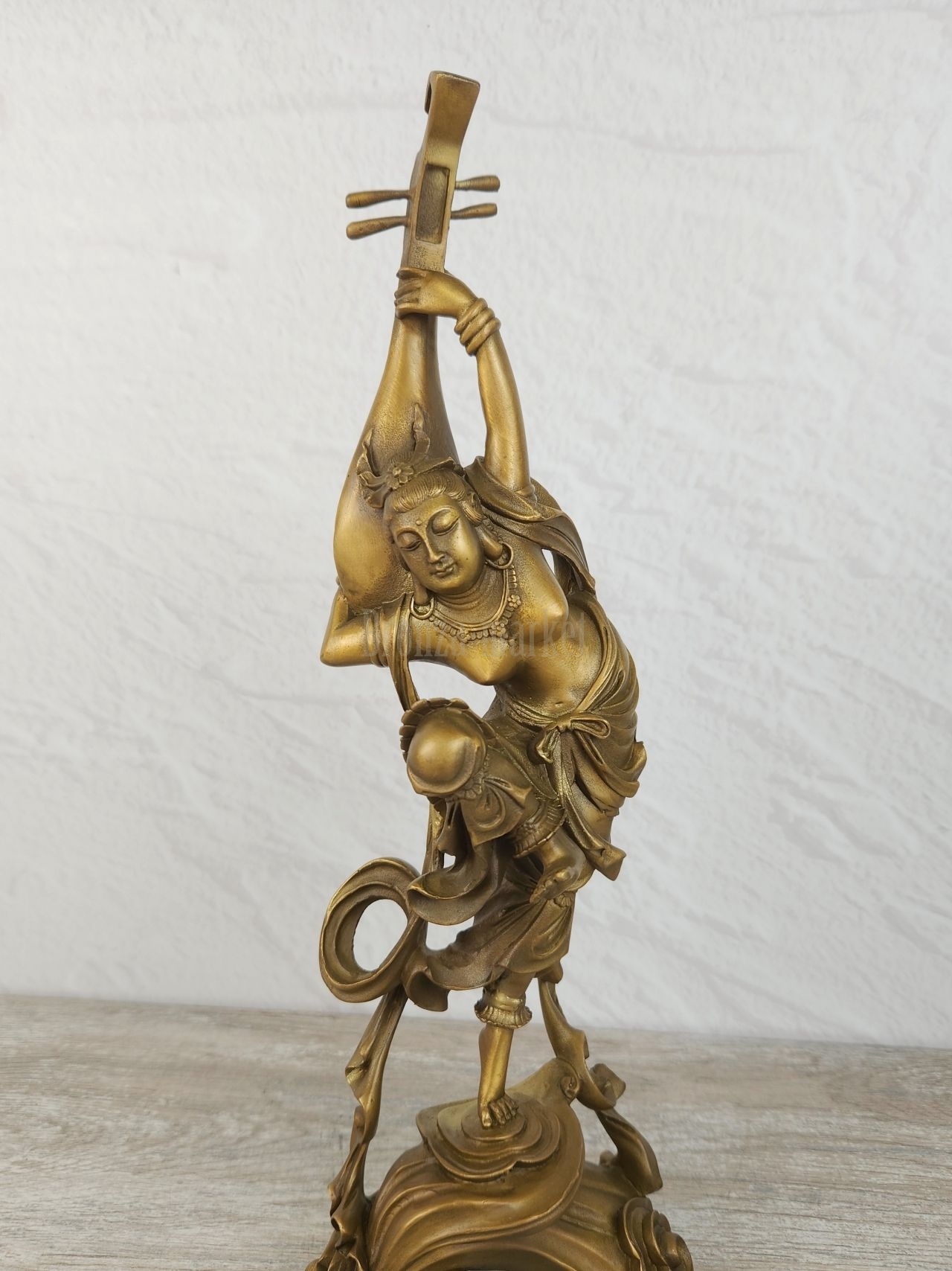 Статуэтка изображает азиатскую танцовщицу в национальных одеяниях, играющую на китайской лютне. Отмечаем интересную позу девушки, что придаёт работе оригинальность и креативность.