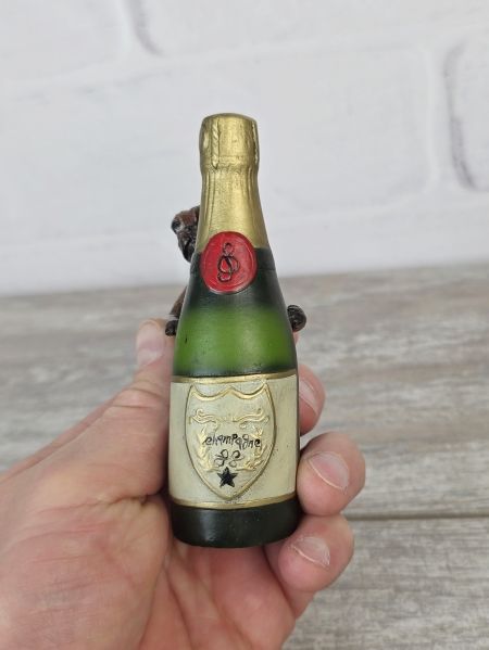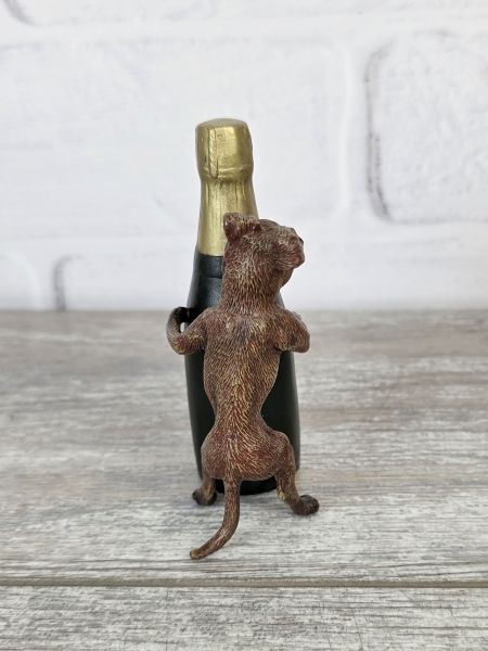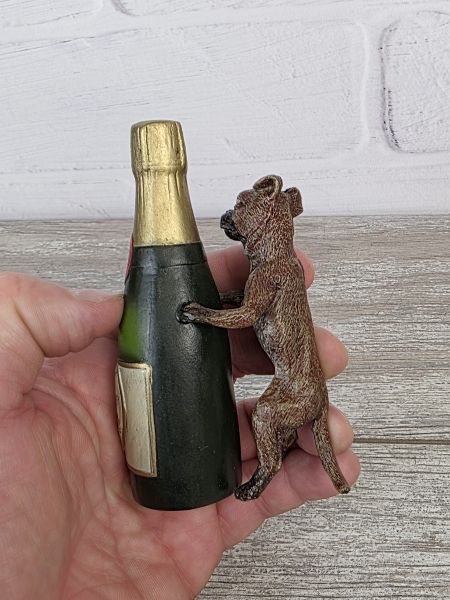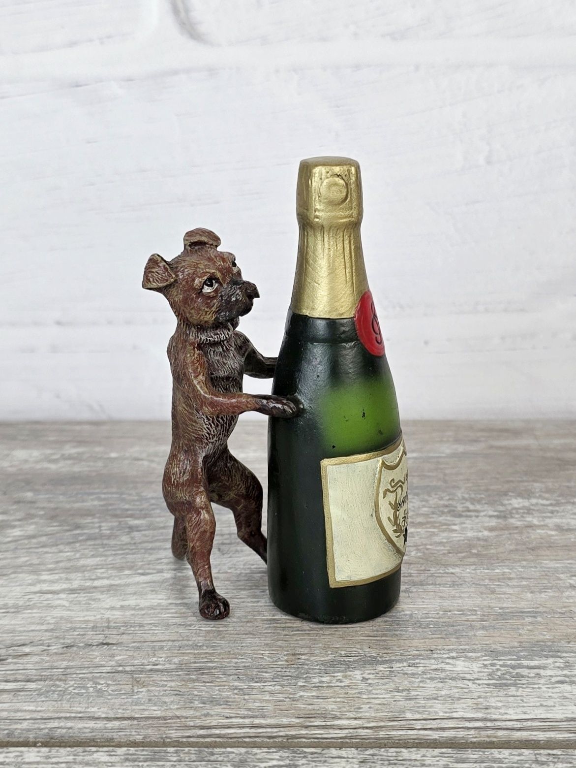 Клеймо "Литера "В" в кувшине" ставилось на изделия, отлитые на фабрике Бергмана. Венская бронза – это особый жанр скульптурной миниатюры. В этом жанре создавались яркие статуэтки из бронзы, раскрашенные вручную. Обращает на себя внимание изумительная проработка мелких деталей работы, каждая ворсиночка, каждый волосочек на теле собачки тщательно прописаны.