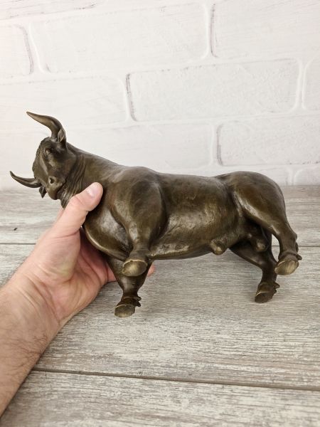 Достаточно крупная (31см), интерьерная скульптура. Основательно смотрится именно без каменной подставки. 3,6кг чистой бронзы. Отмечаем характерную "набычившуюся" стойку.