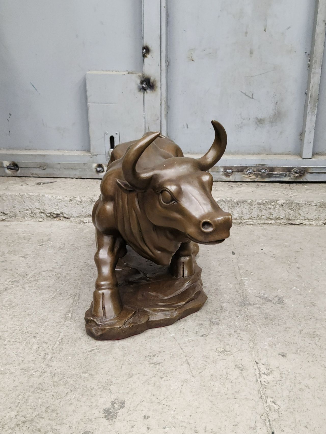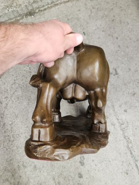 Крупная (46см), интерьерная работа, изображающая быка. Выполнена без каменной подставки, полностью из бронзы. Почти 13кг. Автор умело передаёт характерные особенности животного, тщательно прописывая рельеф тела, мускулатуру.