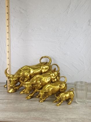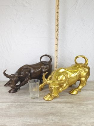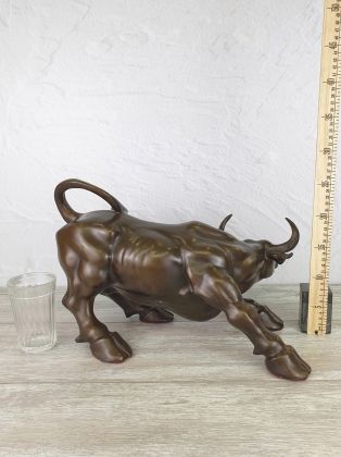 Бык биржевой - 11,5см в длину, цвет коричневый. На одном из фото 4 размера быков. Данный размер самый маленький.