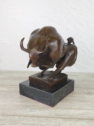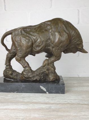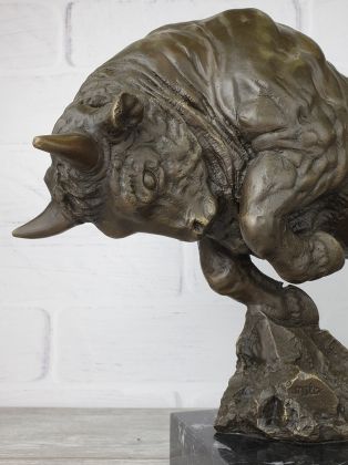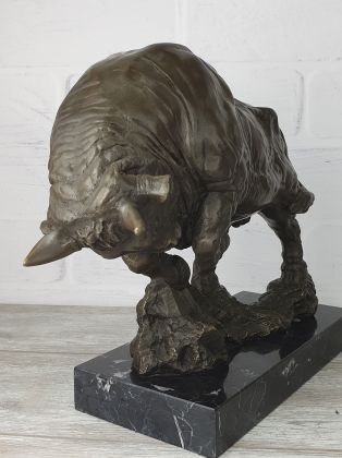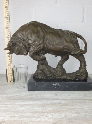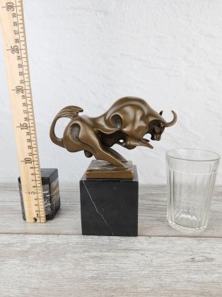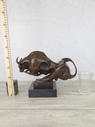 Представляем крупную скульптуру быка (40см). 3,1 кг чистой бронзы. Скульптуpa, исполнeннaя на высочайшем уровне, в мельчайших подробностях передает анатомию тела животного, характерный рельеф мускулатуры.