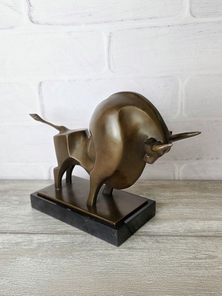 Бык изображен в движении, воплощая силу, мощь, энергию и решимость, что делает ее популярным подарком, в том числе для биржевиков и предпринимателей.