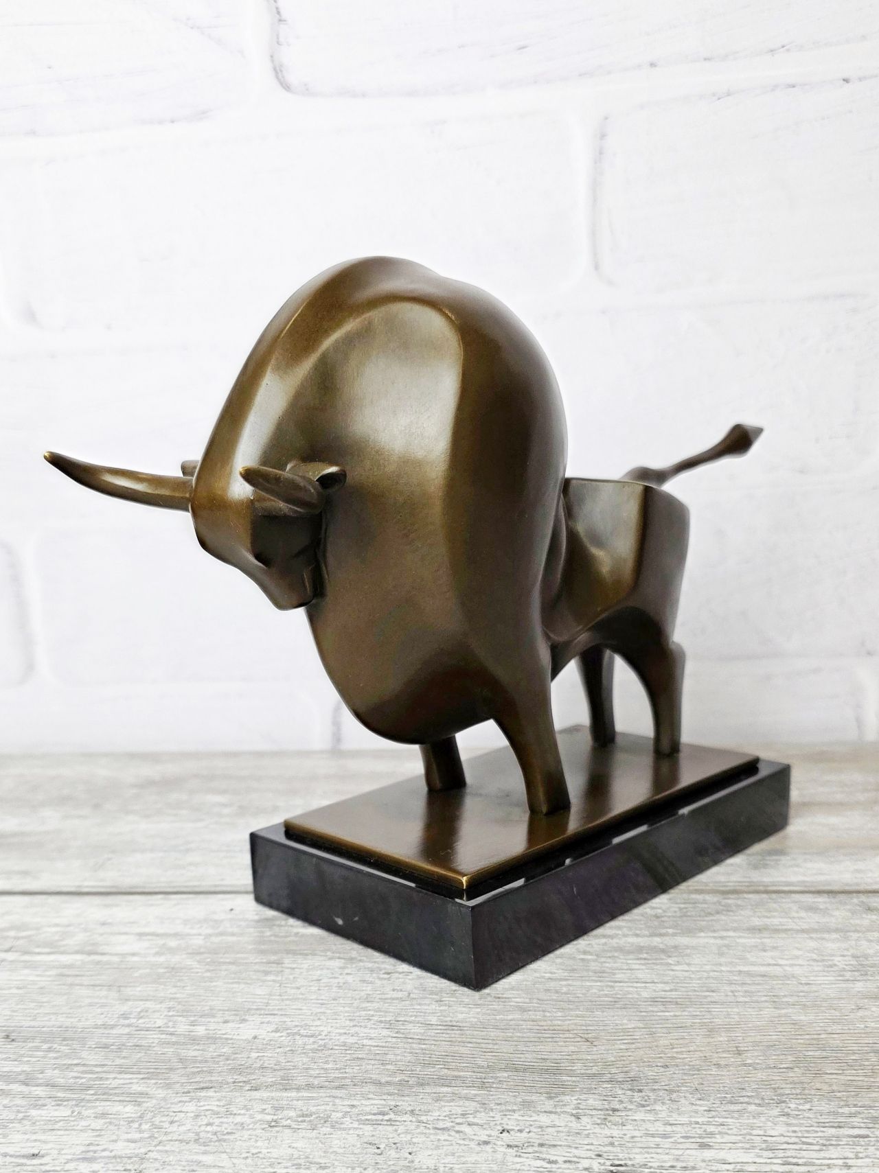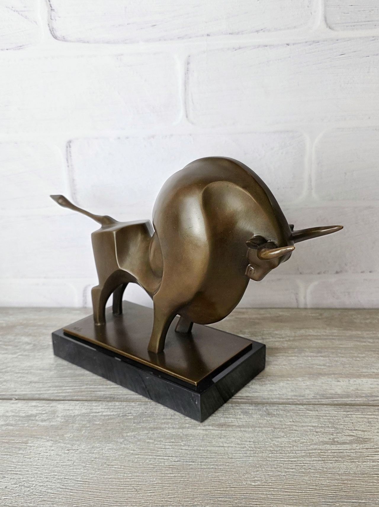 Бык изображен в движении, воплощая силу, мощь, энергию и решимость, что делает ее популярным подарком, в том числе для биржевиков и предпринимателей.