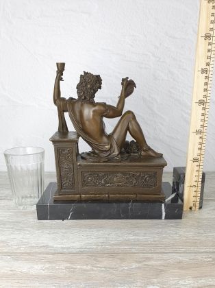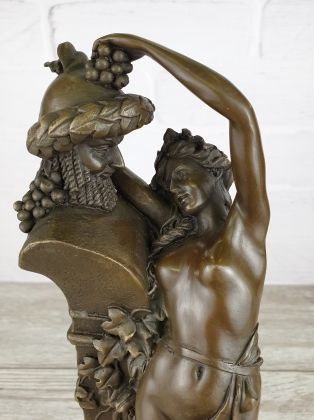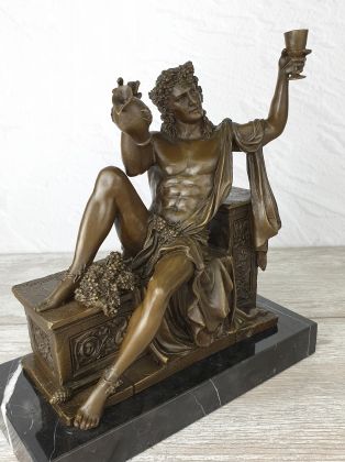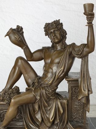 Авторский бюст Бахуса - хмельного бога веселья и виноделия. Вино занимало важную часть в греческой культуре, поэтому Дионис являлся любимым богом жителей. Праздники сбора винограда величали малыми Дионисиями, сопровождавшиеся яркими представлениями с переодеванием, пением, питьем вина.