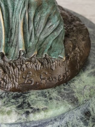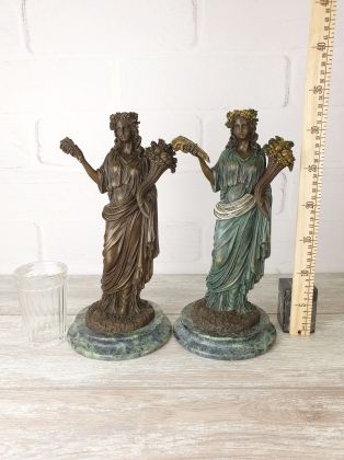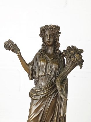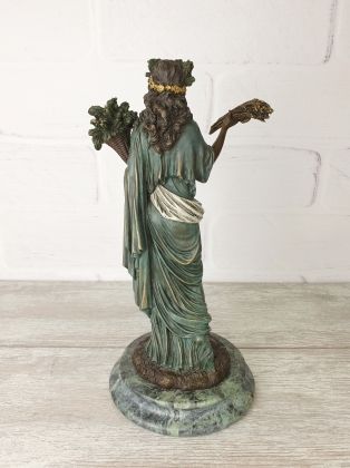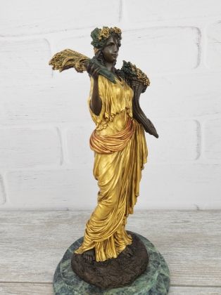Деметра - богиня плодородия и земледелия, помощница в крестьянских трудах, наполняющая амбары земледельца запасами. К Деметре взывают, чтобы зёрна вышли полновесными и чтобы удалась пахота. Деметра научила людей пахоте и посеву, сочетавшись в священном браке на трижды вспаханном поле острова Крит с критским богом земледелия Иасионом, и плодом этого брака был Плутос — бог богатства и изобилия. Луи Эрнест Барриа (Barrias Louis-Ernest), (1841-1905) - известный французский скульптор, окончил Парижскую Школу Изящных Искусств, обучался у таких мастеров как Жофруа, Конье и Кавалье. В 1865 году у него появляется возможность переехать на время в Италию. Именно в этом периоде лежат, как сходятся во мнении многие искусствоведы, корни той легкости и гармонии, которая свойственна работам Барриа: он жил, учился и работал среди античной пластики, музыки, застывшей в мраморе. В 1897 году Луи Эрнест Барриа получает должность вице-президента Академии изящных искусств. Его работы успешно продаются на мировых аукционах, выставляются в крупных музеях и украшают частные коллекции.