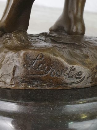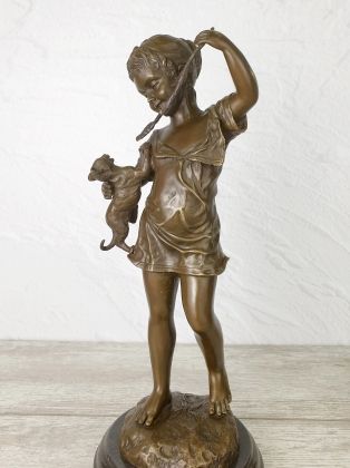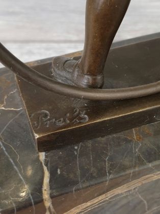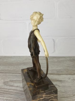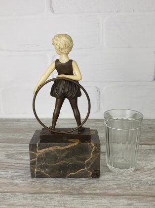Johann Philipp Ferdinand Preiss (1882-1943). Фердинанд Прайс был одним из самых великих скульпторов Арт-деко периода. Мотивы его работ главным образом отражали прекрасную эпоху 1920 - 1930-ых годов. В возрасте 15 лет Фердинанд потерял родителей и жил в семье известного в то время резчика по слоновой кости Philipp Willmann, где он и научился этому мастерству. Впоследствии он основал компанию Preiss & Kassler, выпускавшую изделия из бронзы и слоновой кости. Впервые слоновую кость стали соединять с бронзовым литьем. Именно статуэтки с применением кости были более сложными в исполнении и более редкими, так как не каждый мастер брался за обработку кости. Соответственно такие работы считались более эксклюзивными и ценились выше. Полистоун очень прочный, лёгкий и экологичный материал, из которого получаются изумительно красивые вещи. По своим качествам и внешнему виду он прекрасно заменяет натуральную кость.