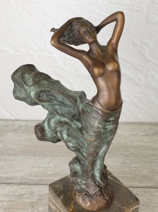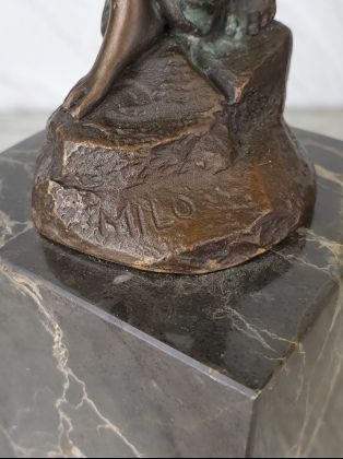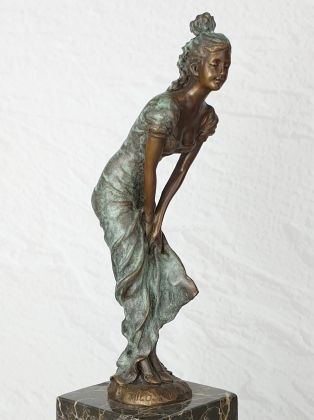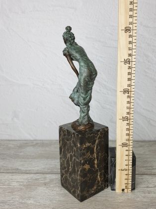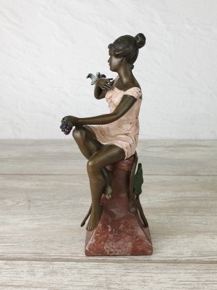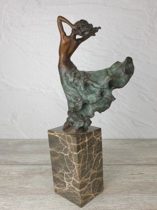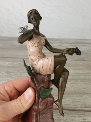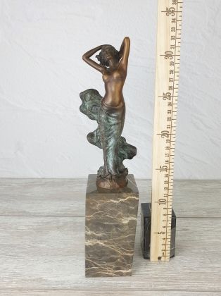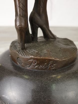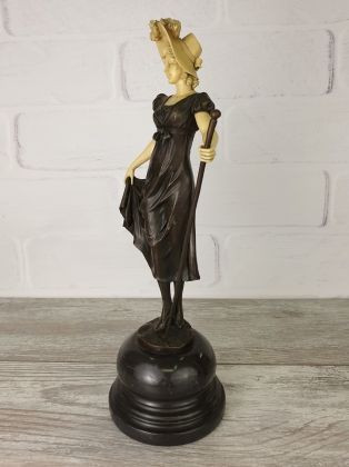 Johann Philipp Ferdinand Preiss (1882-1943). Фердинанд Прайс был одним из самых великих скульпторов Арт-деко периода. Мотивы его работ главным образом отражали прекрасную эпоху 1920 - 1930-ых годов. В возрасте 15 лет Фердинанд потерял родителей и жил в семье известного в то время резчика по слоновой кости Philipp Willmann, где он и научился этому мастерству. Впоследствии он основал компанию Preiss & Kassler, выпускавшую изделия из бронзы и слоновой кости. Впервые слоновую кость стали соединять с бронзовым литьем. Именно статуэтки с применением кости были более сложными в исполнении и более редкими, так как не каждый мастер брался за обработку кости. Соответственно такие работы считались более эксклюзивными и ценились выше. Полистоун очень прочный, лёгкий и экологичный материал, из которого получаются изумительно красивые вещи. По своим качествам и внешнему виду он прекрасно заменяет натуральную кость.