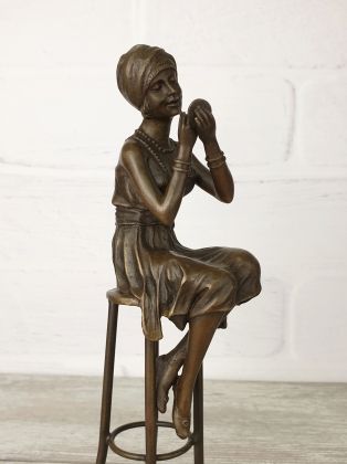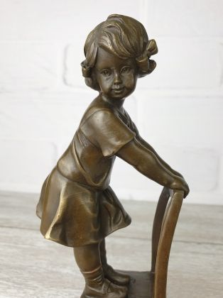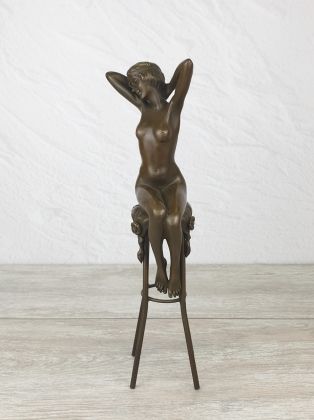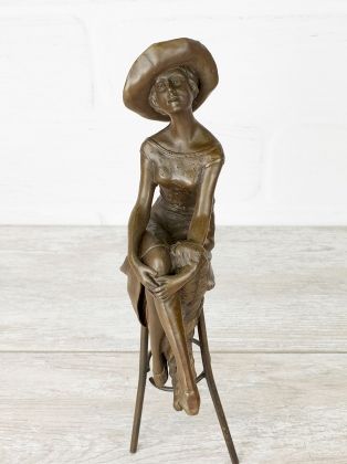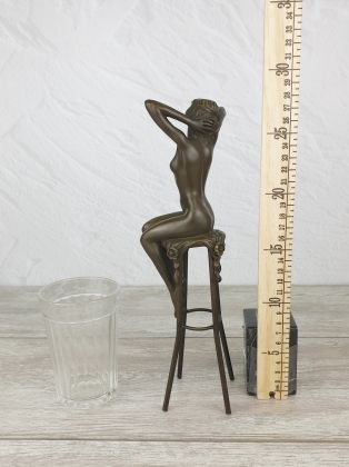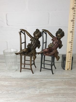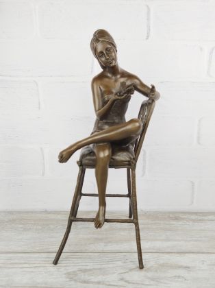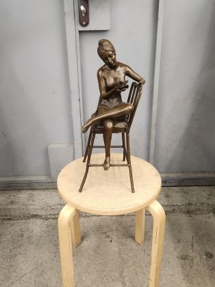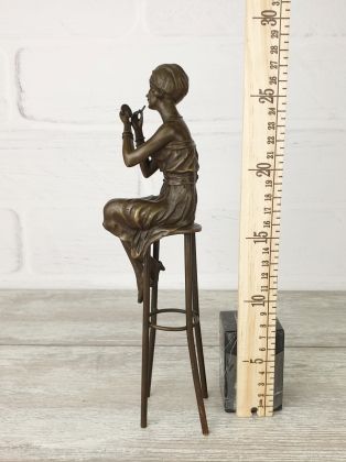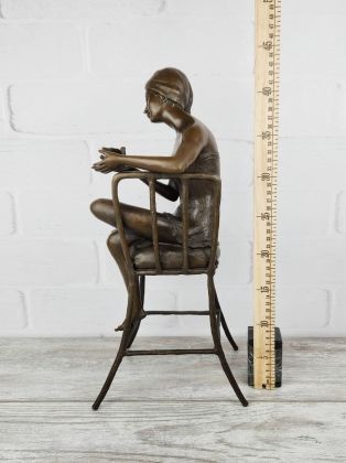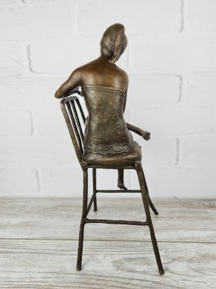 Скульптура приличных размеров (высота 32 см, вес более 3,2кг чистой брозы), разборная, что отличает её от других наших "девушек на стульях". Стильная, изящная вещь, займёт достойное место в интерьере Вашего дома.