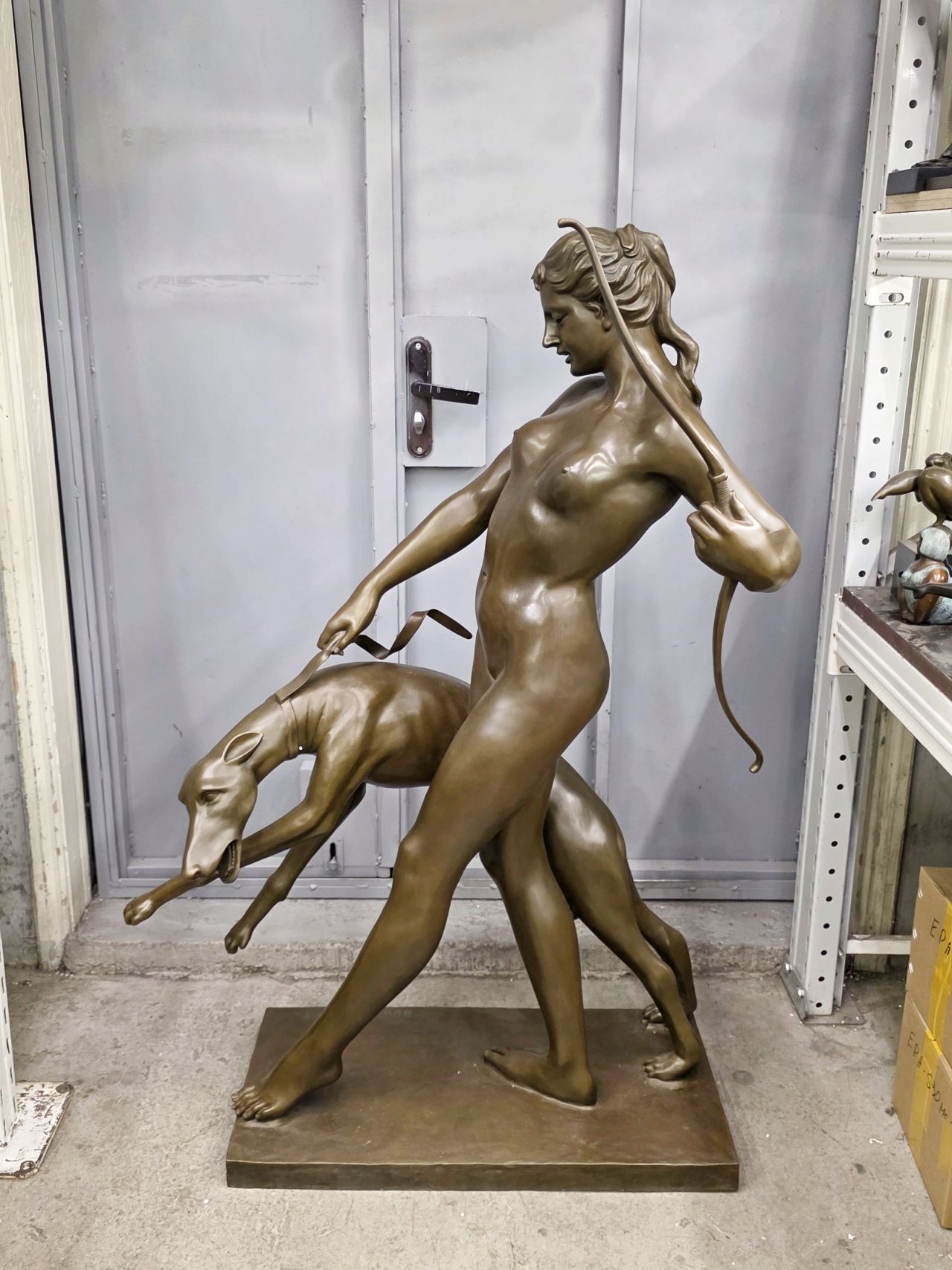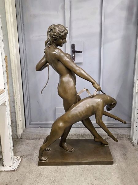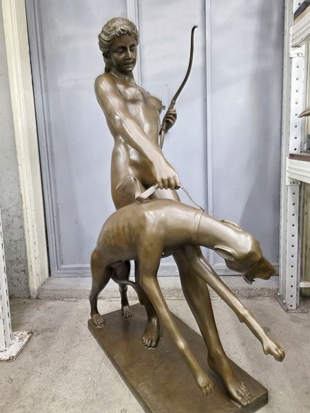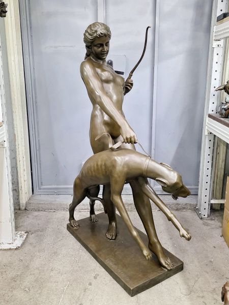 Представляем крупную (127cм в длину, 60кг чистой бронзы) садовую скульптуру, изображающую богиню охоты - Диану. Представленная скульптура является точной(размеры как на оригинале) репродукцией работы известного американского скульптора, созданной 1923году.