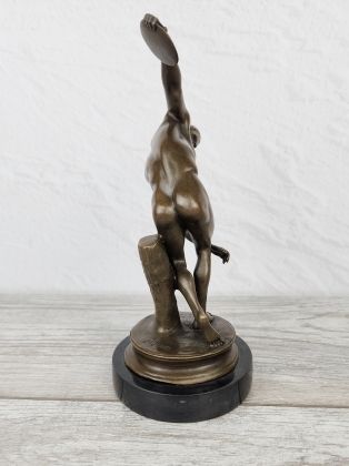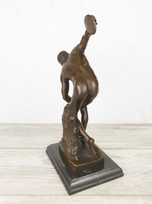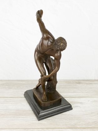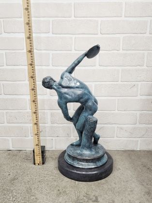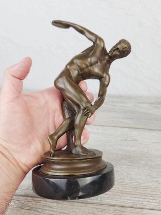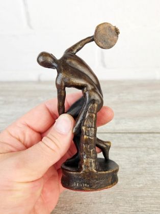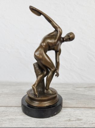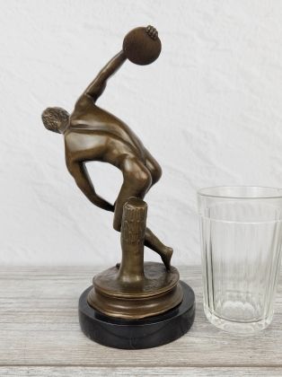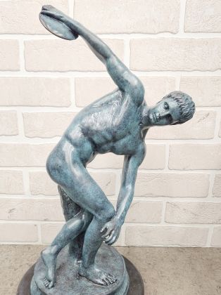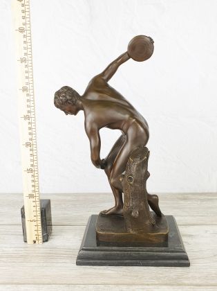 Дискобол – легендарная греческая скульптура, созданная мастером Мироном в середине V века до нашей эры. Ее оригинал был изготовлен из чистой бронзы и изображал атлета во время соревнований, размахивающегося перед броском диска. Важной особенностью монумента считается очень точная, практически идеальная прорисовка человеческой анатомии. Дискобол по праву называют первой скульптурой эпохи античности, которая отображает человека в движении.