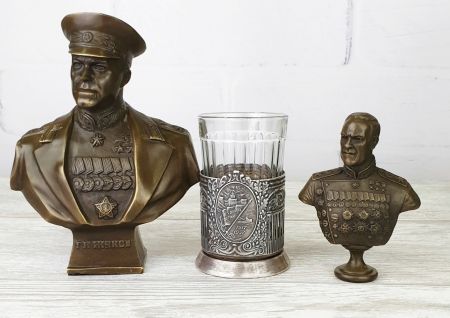 Крупный бюста Жукова отличного качества. Сам бюст чуть больше и тяжелее аналога, кроме того, значительно улучшенно качество проработки мелких деталей бюста. Многие считают именно Г. К. Жукова самым выдающимся, наиболее известным полководцем Великой Отечественной войны, с чьим именем связано большинство громких побед в войне. Четырежды Герой Советского Союза, кавалер двух орденов «Победа», множества других советских и иностранных орденов и медалей. В коллекцию бюстов великих полководцев. Хороший подарок военным, особенно Георгиям.