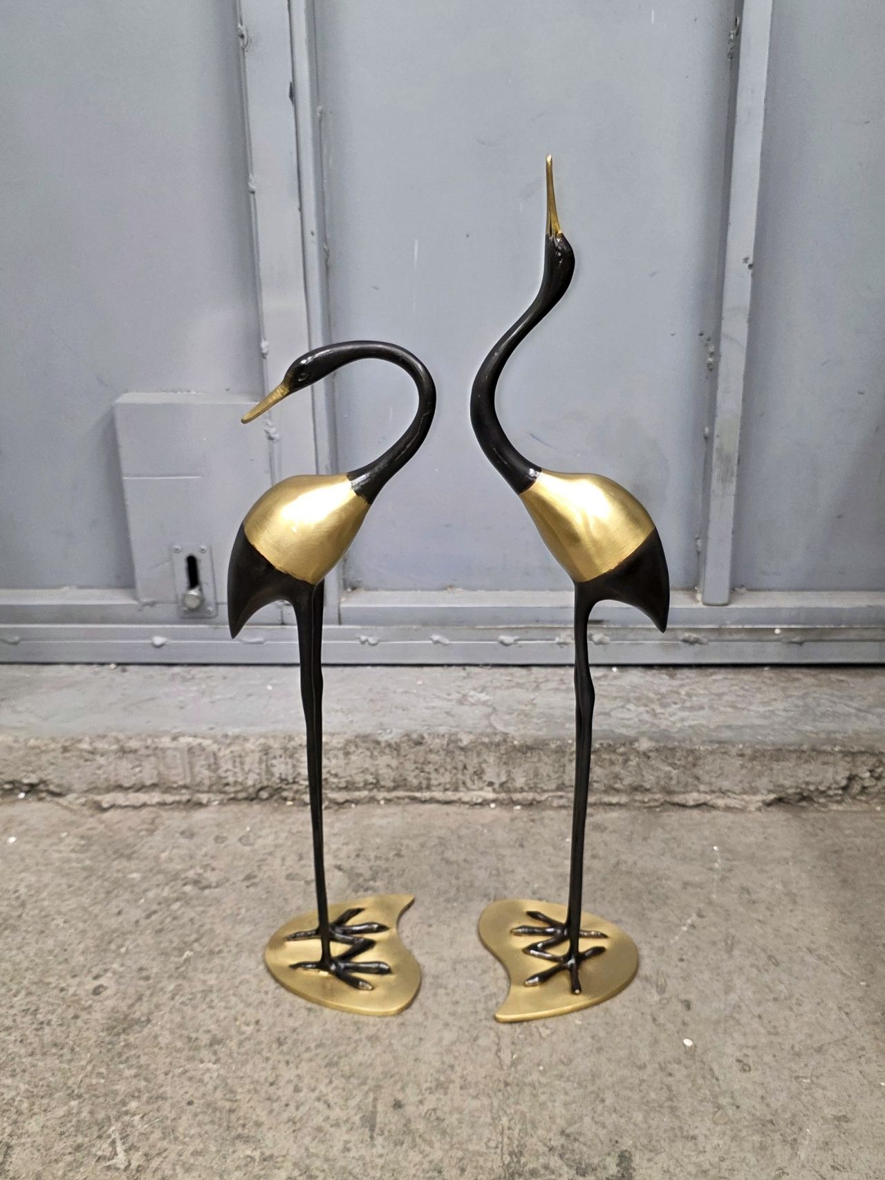 Парные, авторские скульптуры, относящиеся к современному искусству. Высокие (54см). Цена и вес указана за пару. Размеры указаны одного журавля, того что повыше. Продаются исключительно в паре.