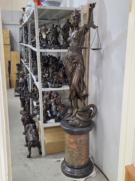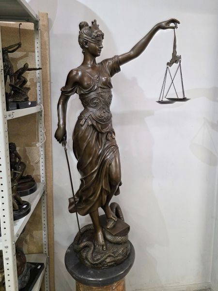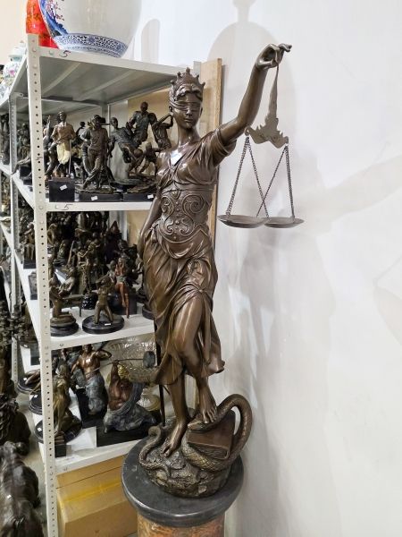 Такая вещь призвана украшать интерьеры просторных кабинетов, фойе крупных судебных и юридических учреждений. Скульптура установлена на мощное каменное основание.
