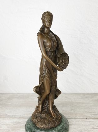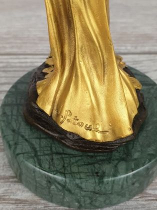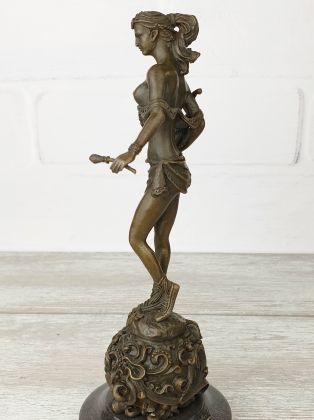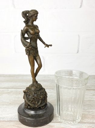 Представляем небольшую статуэтку Фортуны от мастера мелкой пластики Жана Пато. Жан Пато - французский скульптор, творивший в первой половине 20 века был непревзойдённым кудесником мелких скульптур, кропотливо работая над каждой мелкой деталью. Статуэтка, исполненная на высочайшем уровне, в мельчайших подробностях передает анатомию женского тела (изумительно прописаны пальцы рук, ног), черты лица.