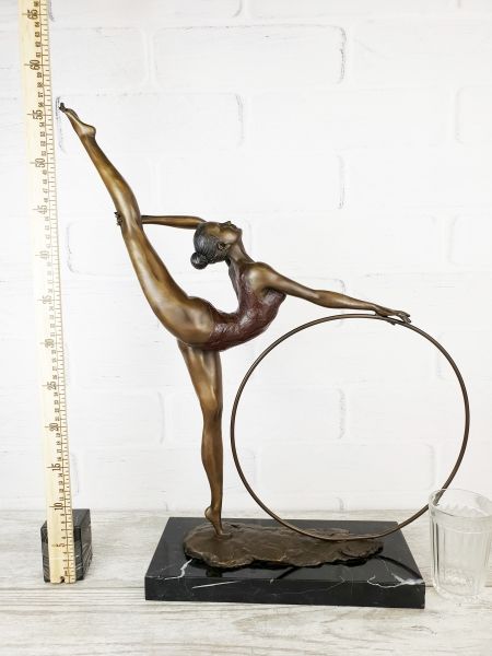 Автор в мельчайших подробностях передаёт безупречное тело гимнастки, досконально прописывая каждый изгиб, каждую выпуклость на её фигуре. Особое внимание уделяется лицу девушки...женственное, удивительно красивое.