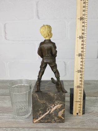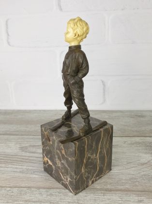 Качественная работа европейского скульптора, изображающая горнолыжника. Автор умело передаёт динамику момента прохождения спуска, поза горнолыжника естественна, реалистична. Обращает на себя внимание предельное внимание к каждому сантиметру работы, в мельчайших подробностях переданы детали одежды и обмундирования спортсмена.