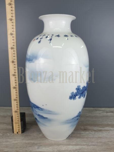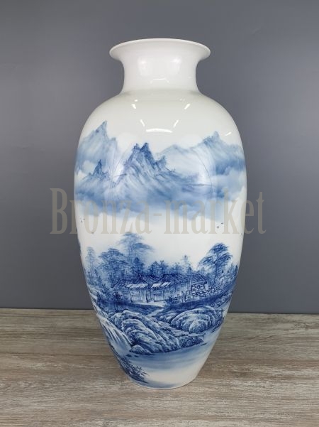 интерьерная китайская ваза, расписанная исключительно вручную известными мастерами Поднебесной. Представленная ваза относится к очень популярному и древнему стилю росписи, берущему своё начало в 15 веке, во времена правления династии Мин.Главные отличия данного стиля письма - синий или голубой цвет на белом фоне (похож на нашу Гжель). В комплекте подарочная коробка, выполненная в традиционном китайском стиле и паспорт с описанием вазы на китайском языке.