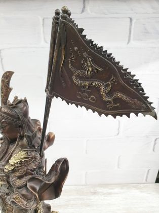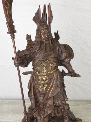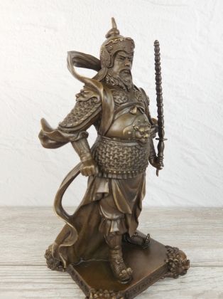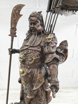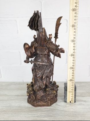 Крупная кабинетная скульптура, изображающая китайского бога войны Гуаня. 76см в высоту, 21.3кг чистой бронзы. Качество исполнения безупречное. Отличный подарок военным или увлекающимся единоборствами.