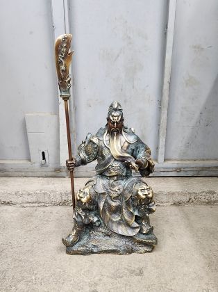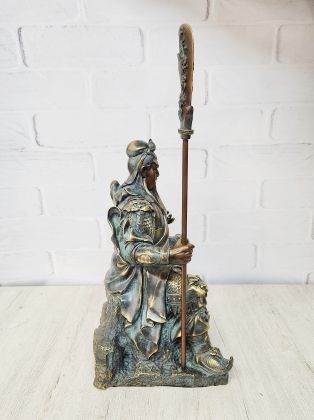 Гуань, величественный и могучий китайский бог войны. По древней легенде, в незапамятные времена жил в Китае великий мастер боевых искусств в совершенстве владевший довольно экзотическим оружием: большим кривым ножом, примотанным к длинному шесту. Подвиги мастера, изящество и быстрота движений потрясали воображение современников, его боевые приёмы стали настолько популярны, что всё больше и больше воинов предпочитали "нож Гуаня" другому холодному оружию. Впоследствии китайцы обожествили Гуаня и поклонялись ему как богу войны. Китайцы почитают его как лучшего защитника дома от воров, грабитилей, убийц и других напастей, а также собственного бизнеса от конкурентов. Кроме того Гуань - покровитель мудрых правителей и военных.