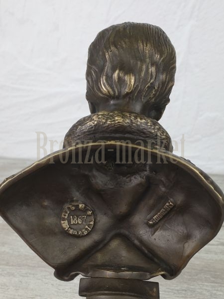 Феликс Шопен (1813 - 1892) -"бронзовый кудесник", французский и российский литейщик, поставщик Двора Его Императорского Величества. Особое место в работах Шопена занимали бюсты российских правителей. Работа с бюстами началась с того, что в 1840 году он обнаружил мраморные бюсты, которые выполнил скульптор из Италии А. Пенна. В России итальянскому скульптору побывать не удалось, поэтому его бюсты российских царей и князей были очень условно схожи с настоящими историческими персонажами. Тем не менее Шопену понравилась идея создания серии бюстов и уже через девять лет на очередной выставке он представил сразу 63 бюста российских правителей, которые выполнил в натуральную величину. Пятнадцать лет спустя Шопен представил на международной выставке в Париже уменьшенные версии царских бюстов. Переход от крупных бюстов к их уменьшенным копиям оказался удачным ходом, т.к. теперь они относились к кабинетной скульптуре и пользовались спросом.
