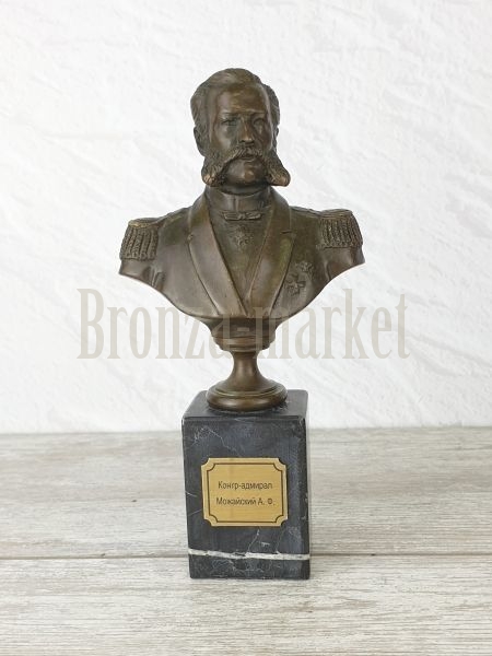 Бюст Можайского, установленный на камень. Отмечаем мелчайшую детализацию, проработку каждого элемента.