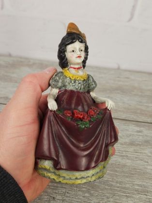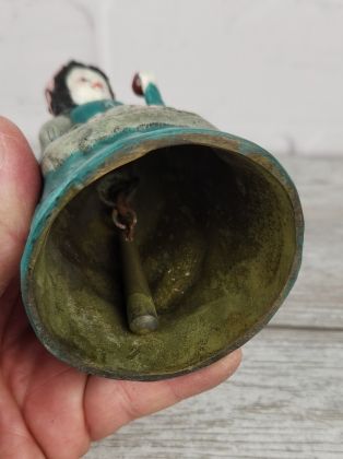 Представляем серию колокольчиков, изображающих молодых девушек в виде месяцев и персонажей сказок. Автор досконально прописывает тонкие черты лица, взгляд, пальчики рук, многочисленные детали туалета, складки платья. И конечно отмечаем качественную, ручную раскраску, придающую вещи состаренный, антикварный вид. В конце XIX — начале XX века в разряд вещей, которые охотно коллекционировались любителями пооригинальничать, органично вписалась так называемая "венская бронза", выпускаемая художественной промышленностью Австрии. Ее "изюминкой" стала мелкая скульптурная пластика ("венская миниатюра") - небольшие по размерам статуэтки, раскрашенные вручную.