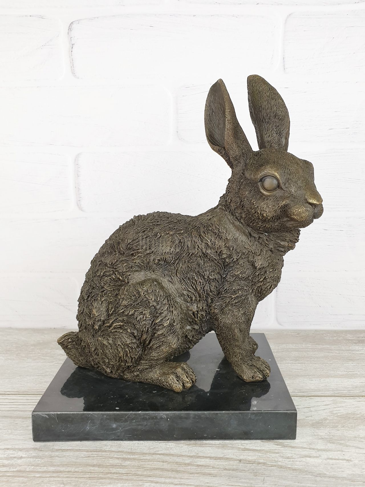 Качественная работа европейских скульпторов, изображающая кролика. Крупная, интерьерная вещь (34х24см; 7,1 кг.). Обращает на себя внимание предельное внимание к каждому сантиметру работы, в мельчайших подробностях передана структура шерсти животного.