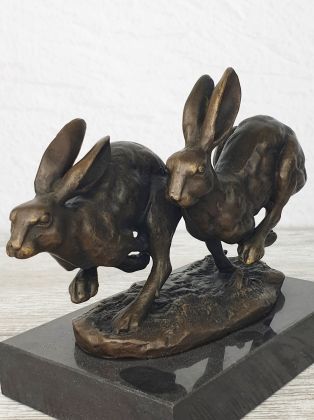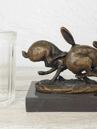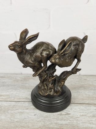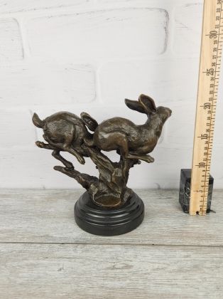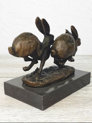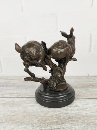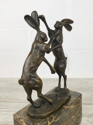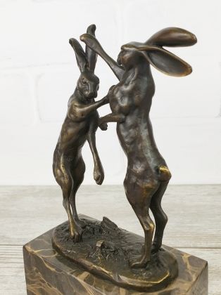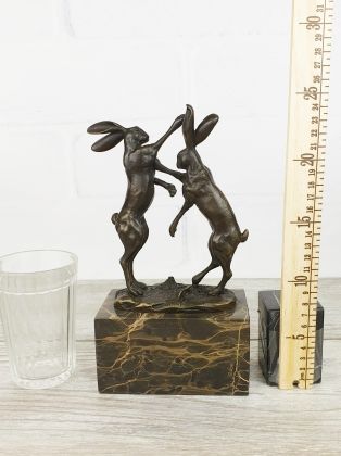 Авторская, забавная статуэтка, изображающая дерущихся зайцев.