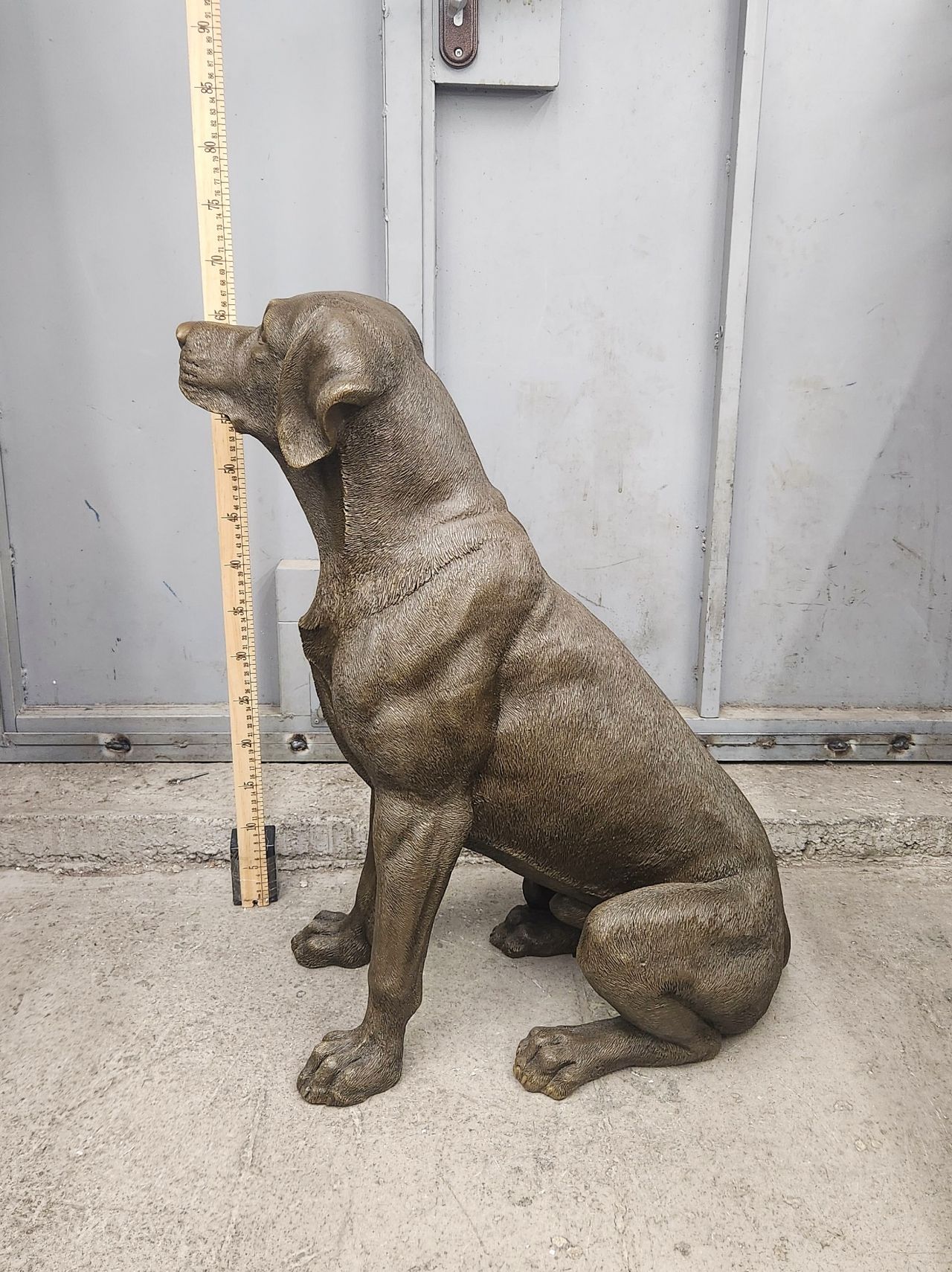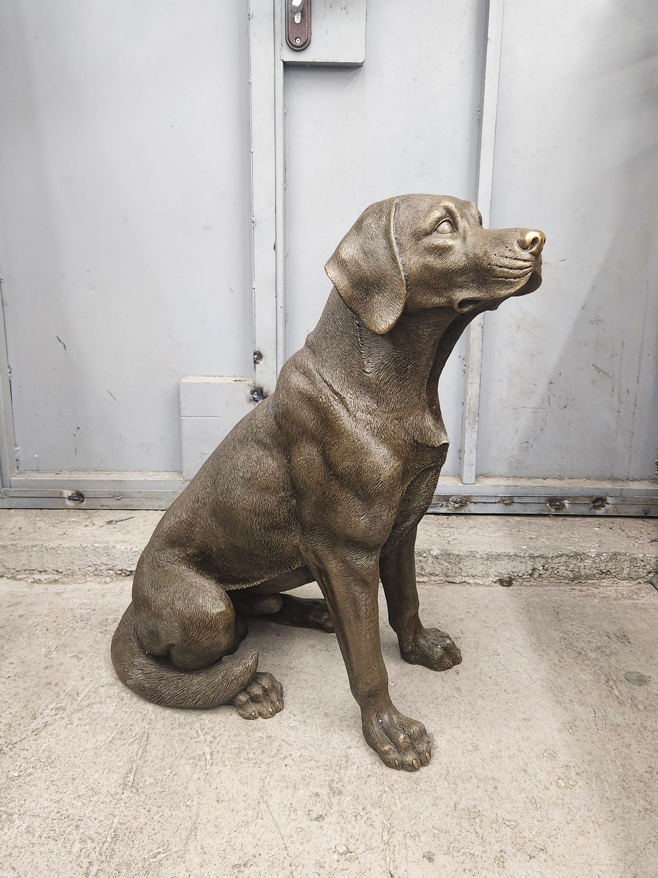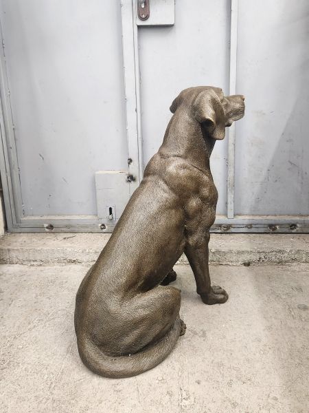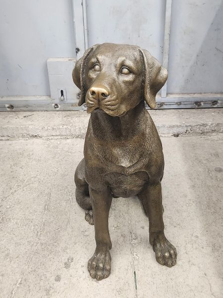 Представляем крупную скульптуру, изображающую лабрадора, можно сказать в натуральную величину. Размеры 68х50см, вес 29,5кг чистой бронзы. Обращаем внимание на тщательную проработку шерсти животного. Каждый локон учтён и прописан должным образом.