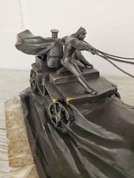 Крупная (44см; 11,2кг) работа, созданная руками российских скульпторов. Без подписи. Выполнена на мощном бронзовом основании, которое в свою очередь установлено на мраморный камень.