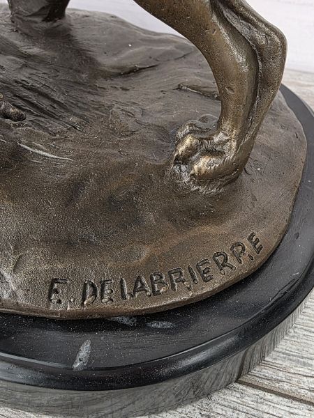 Поль Эдуар Делабьерр (1829-1912) - знаменитый французский скульптор - анималист второй половины XIX века. Становление скульптора находилось под сильным влиянием большого мастера Antoine Louis Barye. Дебют пришелся на парижский Салон 1848 года, а выставлялся он там вплоть до 1882 г.