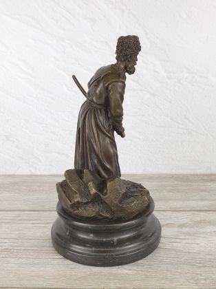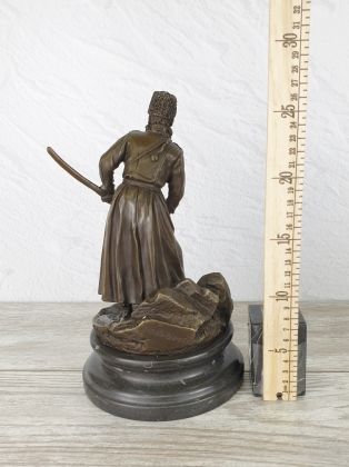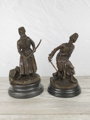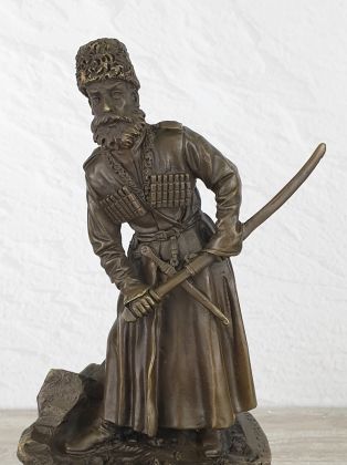 Грачев Василий Яковлевич (1831-1905) - известный русский мастер мелкой пластики. Мальчиком отдан в ученики придворному мастеру по чеканке Андрееву в Санкт – Петербурге, у которого обучался шесть лет. В дальнейшем работал у серебряных дел мастеров, в том числе у И.С.Сазикова. Скульптурой занимался как самоучка. Выполнял модели из воска для известных фабрикантов К.Ф.Верфеля, П.А. Овчинникова, И.П Хлебникова, под маркой заведений которых известно большинство его произведений. Эти работы неоднократно награждались на художественно–промышленных выставках. Основная тема произведений – жанровые сцены с изображением людей, людей, эпизоды исторической и военной тематики.Работы "Линейный казак" и "Черкес, заметивший врага" являются парными скульптурами, но их можно купить по отдельности.