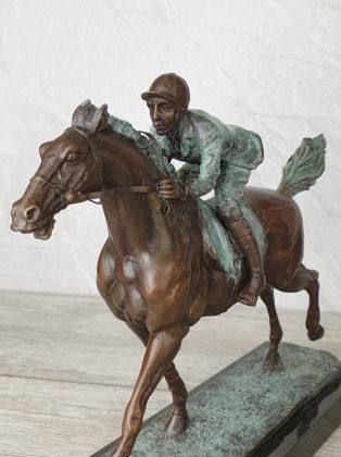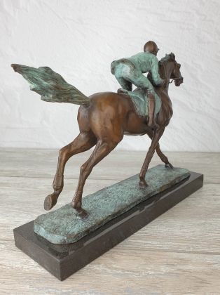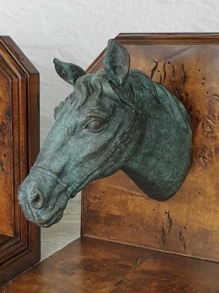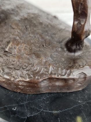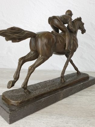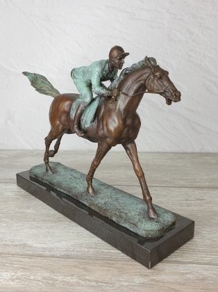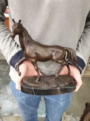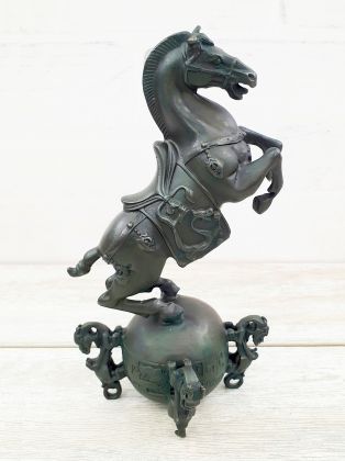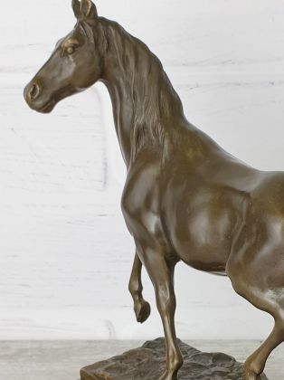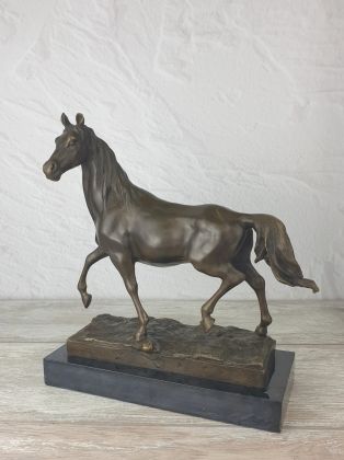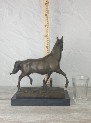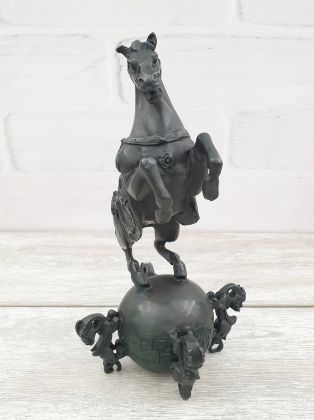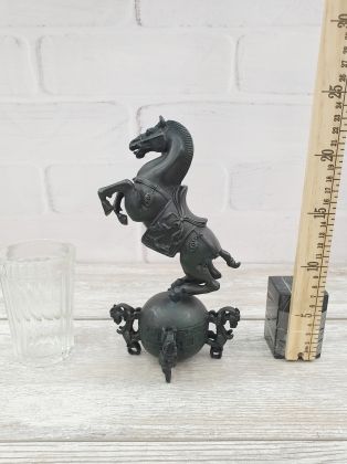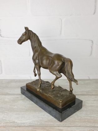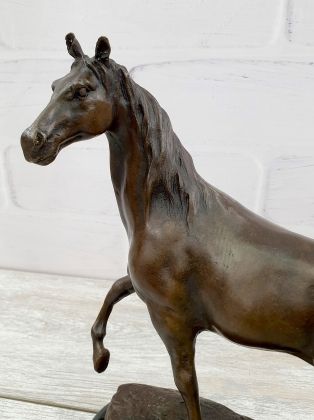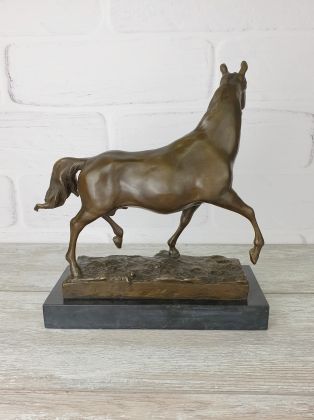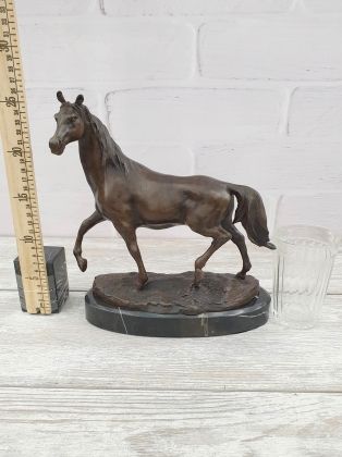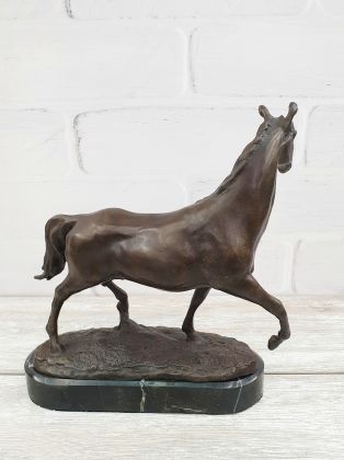 Представляем бронзовую скульптуру лошади, созданную руками российских мастеров. Главная особенность данной работы в том, что она искусственно состарена, кроме того обладает характерной, винтажной лепкой, что вкупе создаёт впечатление, что мы держим в руках старую, антикварная вещь. Скульптура достаточно крупная (35х33 см и почти 11кг бронзы).