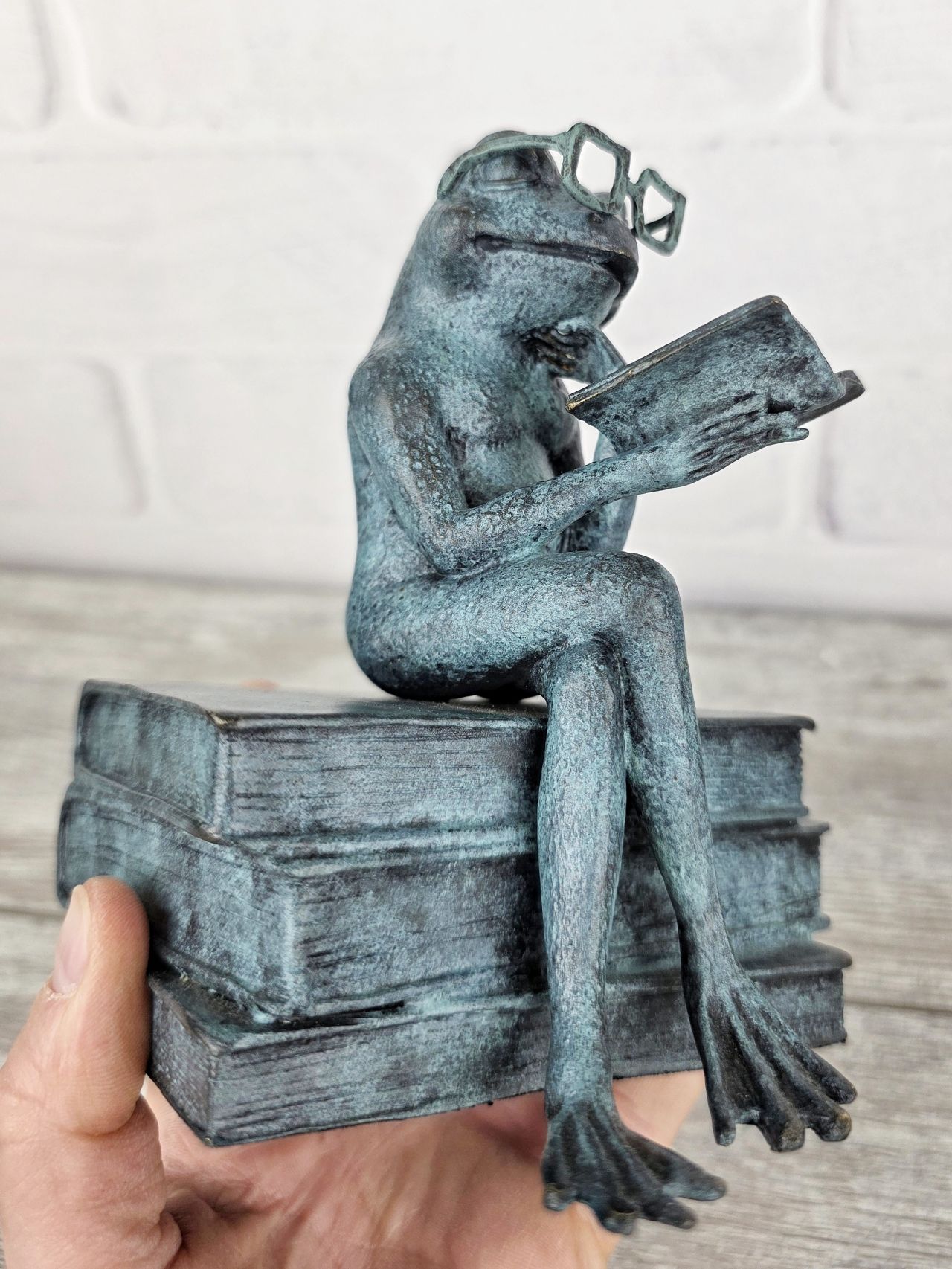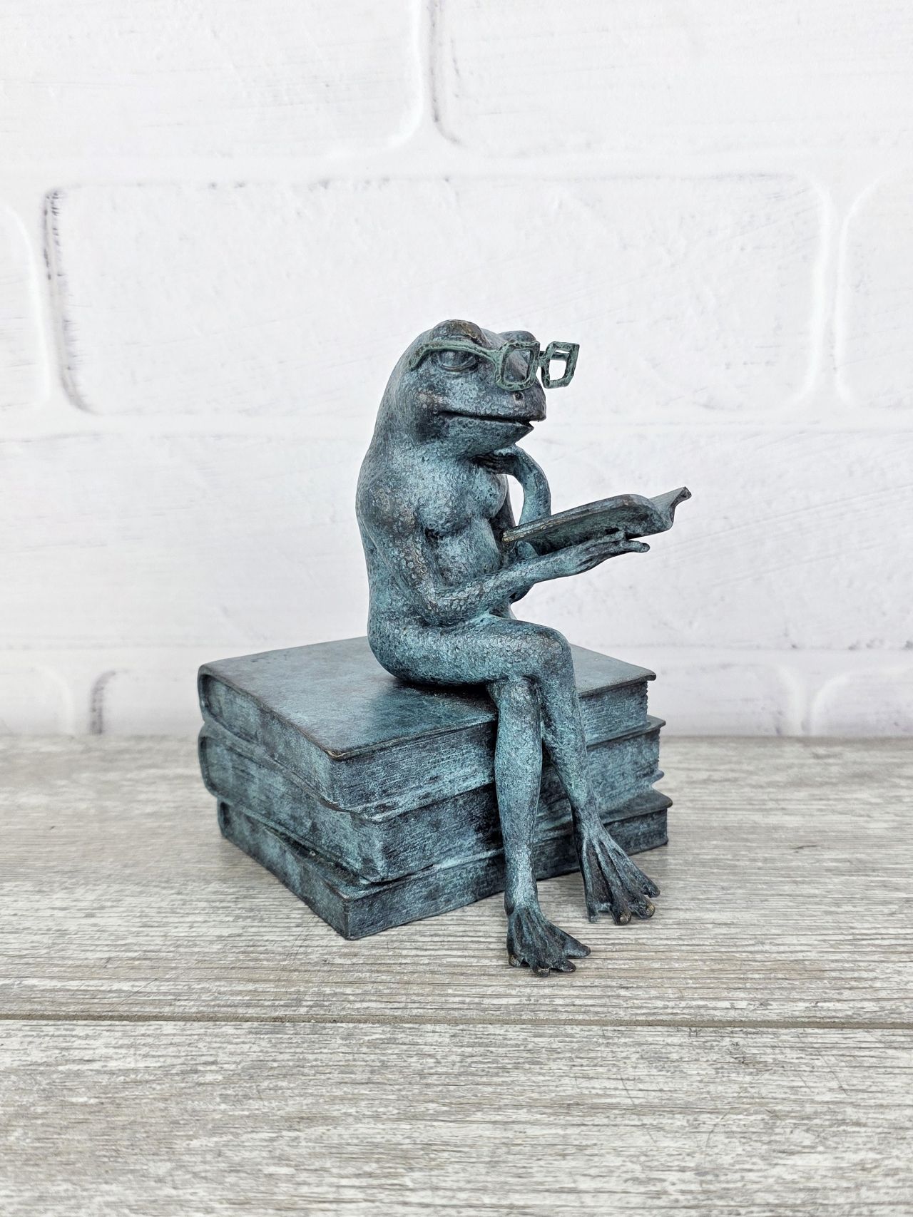 Такая лягуша будет неплохо смотреться на книжной полке, подпирая незаконченный ряд книг к примеру.