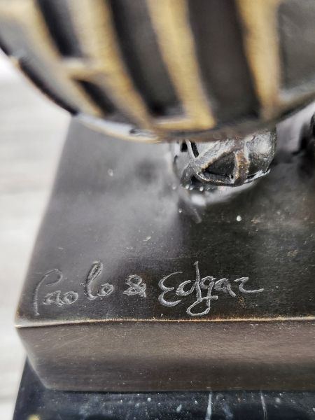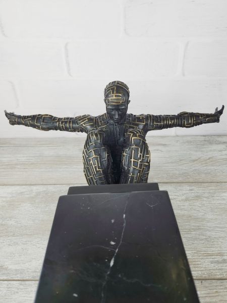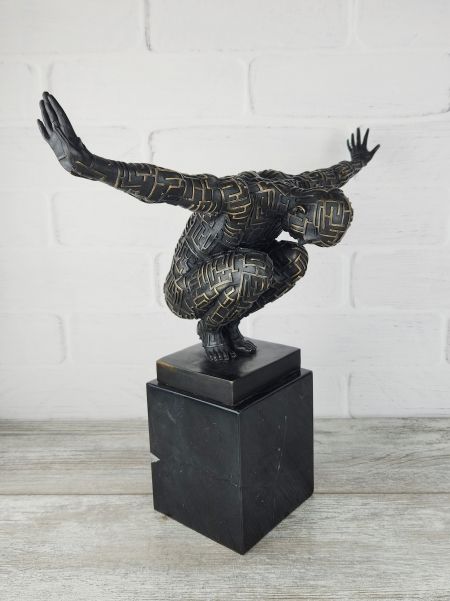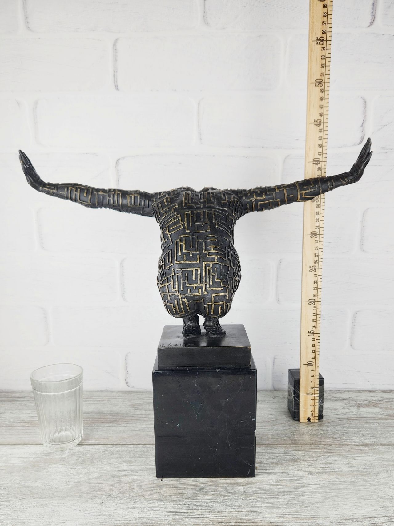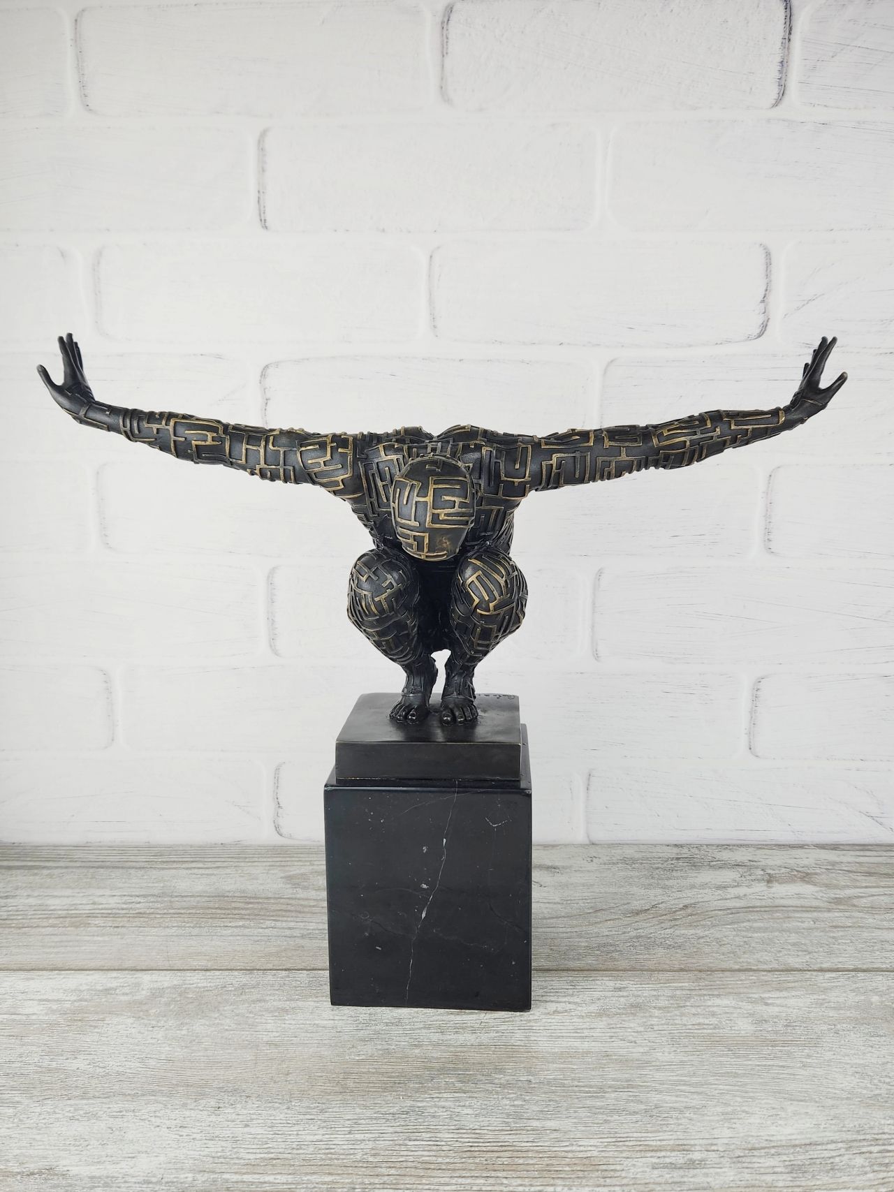 Авторская, крупная (45см; 12,3кг) работа европейских скульпторов, изображающая мага лабиринтных линий. Обращает на себя внимание предельное внимание к каждому сантиметру работы, в мельчайших подробностях передана структура - каждая знак выступает определённой выпуклостью на поверхности, выделен цветом.