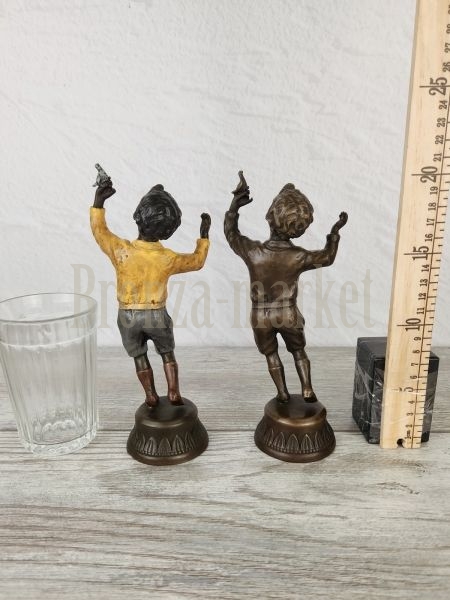 Julius Schmidt-Felling (1895-1930)-талантливый немецкий скульптор, творивший в начале 20-го столетия. Статуэтка была задумана и воспроизведена в паре: "Мальчик-Плохиш" и "Мальчик с голубем", чтобы показать контраст между мальчиками. Один мальчик хорошо воспитан, прилежно одет, с голубем в руках, явно производит впечатление положительного ребёнка, выросшего в хорошей семье. Другой мальчик напротив, неряшливо одет, курит и судя по всему получил "уличное воспитание". В данном случае мы представляем фигурку положительного персонажа. Выразительно переданы эмоции на лицах детей, умело прописана одежда, эпоха.