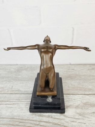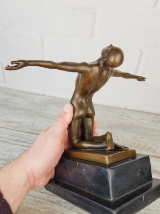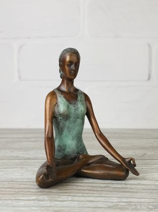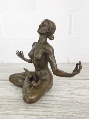 Представляем небольшую статуэтку, изображающую медитирующую девушку. Это уменьшенная копия работы американского скульптора Бредли Пейдж. Статуэтка, исполненная на высочайшем уровне, в мельчайших подробностях передает анатомию женского тела (изумительно прописаны пальцы рук, ног), черты лица. Данная работа вручную раскрашена.
