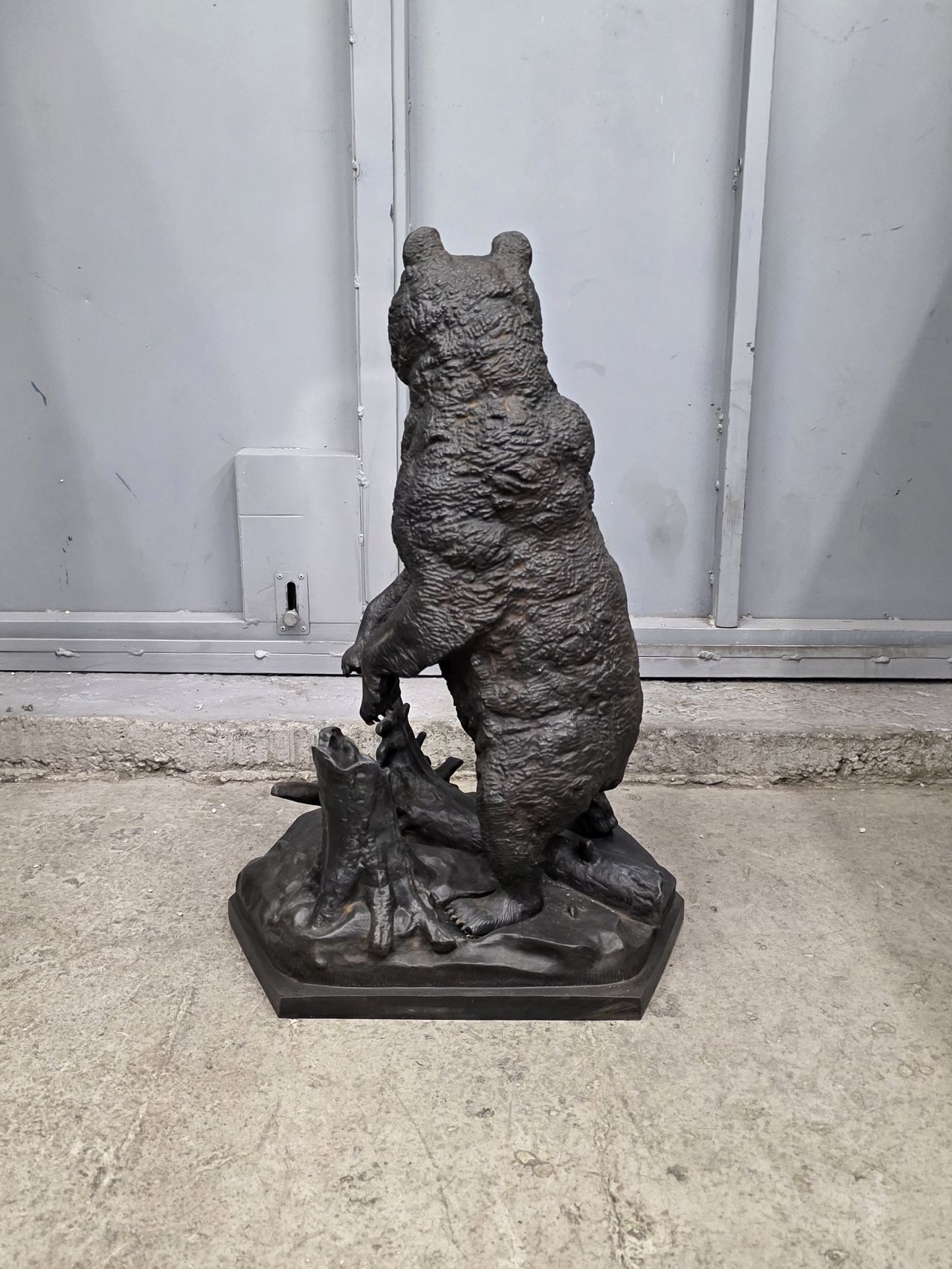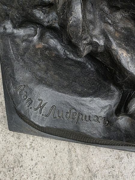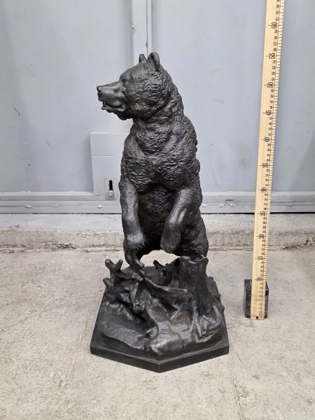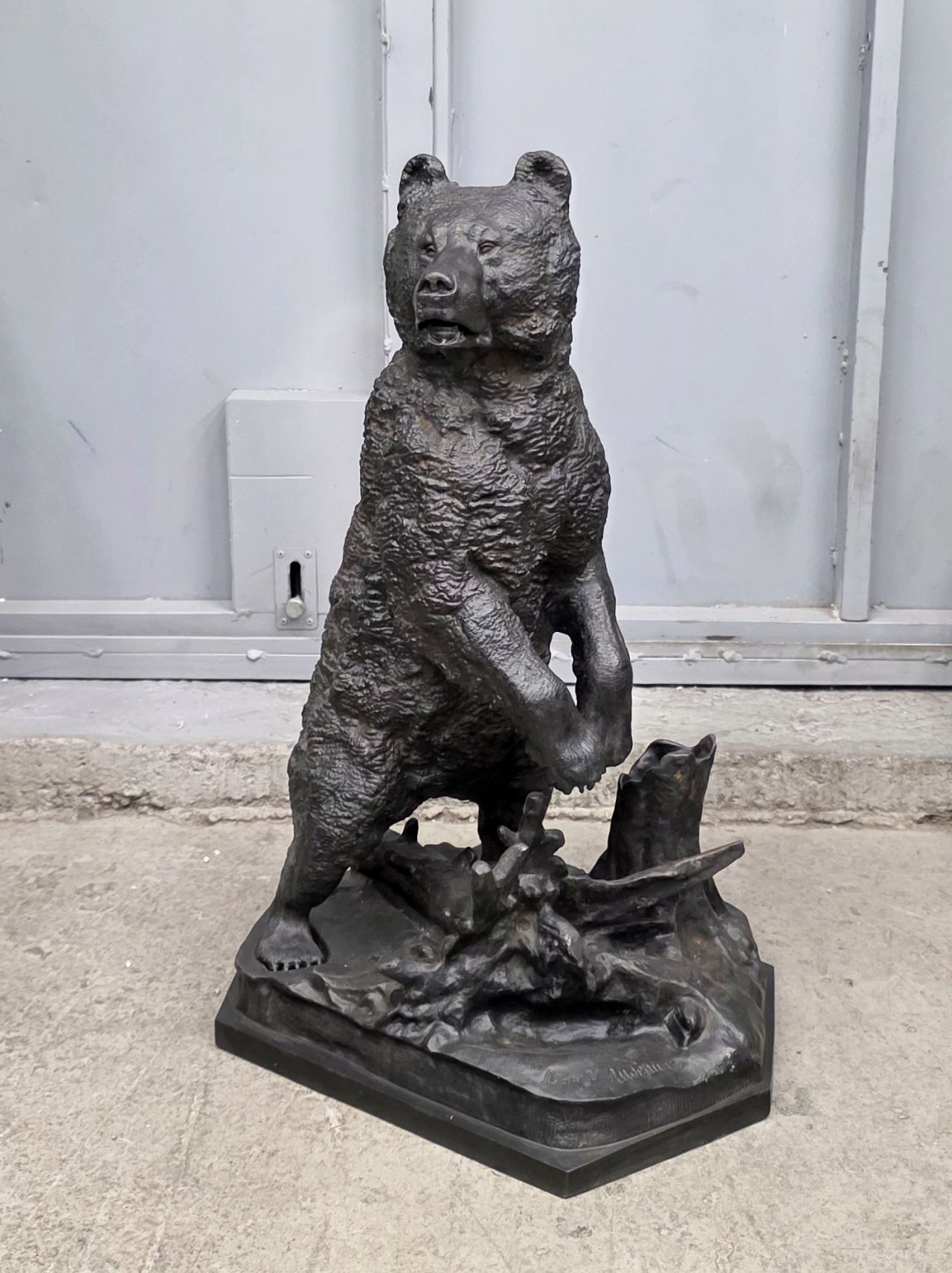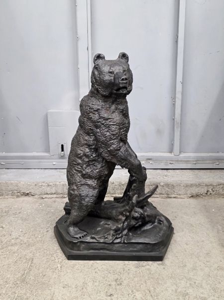 Изображённая скульптура - это известное произведение "Медведь на задних лапах" (также известное как "Лисинский медведь"), выполненное по модели скульптора Николая Либериха, созданной в 1865 году. Данное произведение было отлито на заводе "Касли" в 60годах прошлого столетия скульптором Шмаковым.
