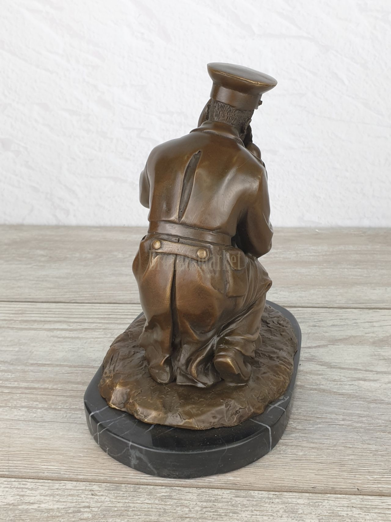 Модель работы известного советского скульптора Никогосяна, выполненной в 1956 году. Сюжет скульптуры выполнен в лучших традициях жанровых статуэток советского фарфора: маленькая девочка потерялась и плачет, а добрый дядя-милиционер присел около неё и успокаивает.