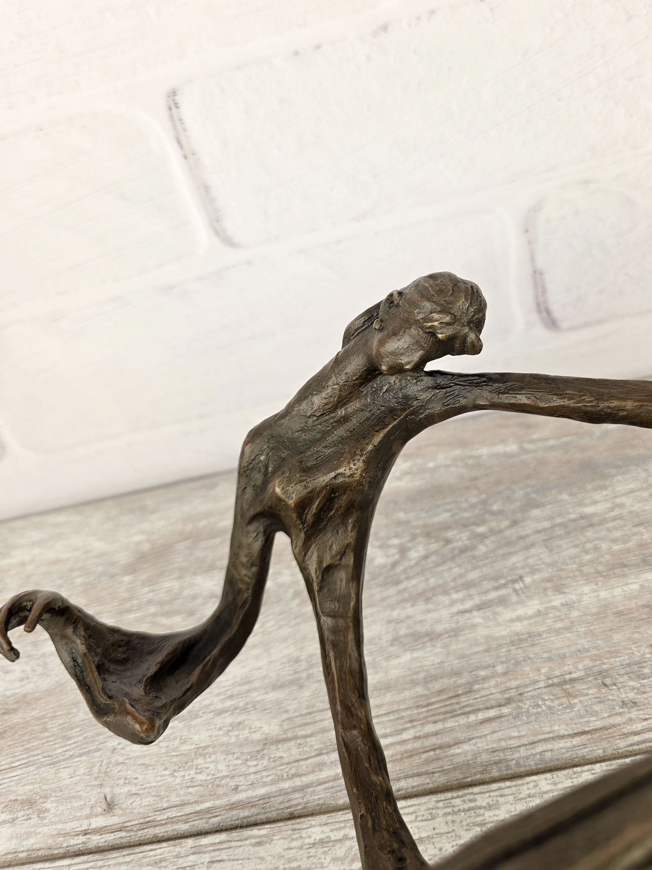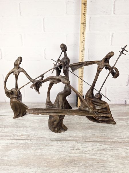 Достаточно крупная (36) скульптура, относящаяся к современному искусству. Одна из серии авторских работ, датированных началом 20го века и изображающих восточных девушек, играющих на самобытных, архаичных музыкальных инструментах. Статуэтка не имеет каменного основания, выполнена полностью из бронзы (2,7кг)