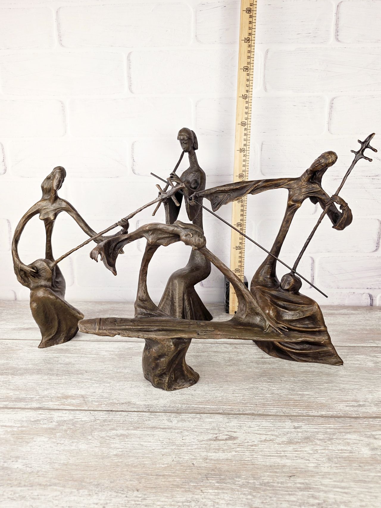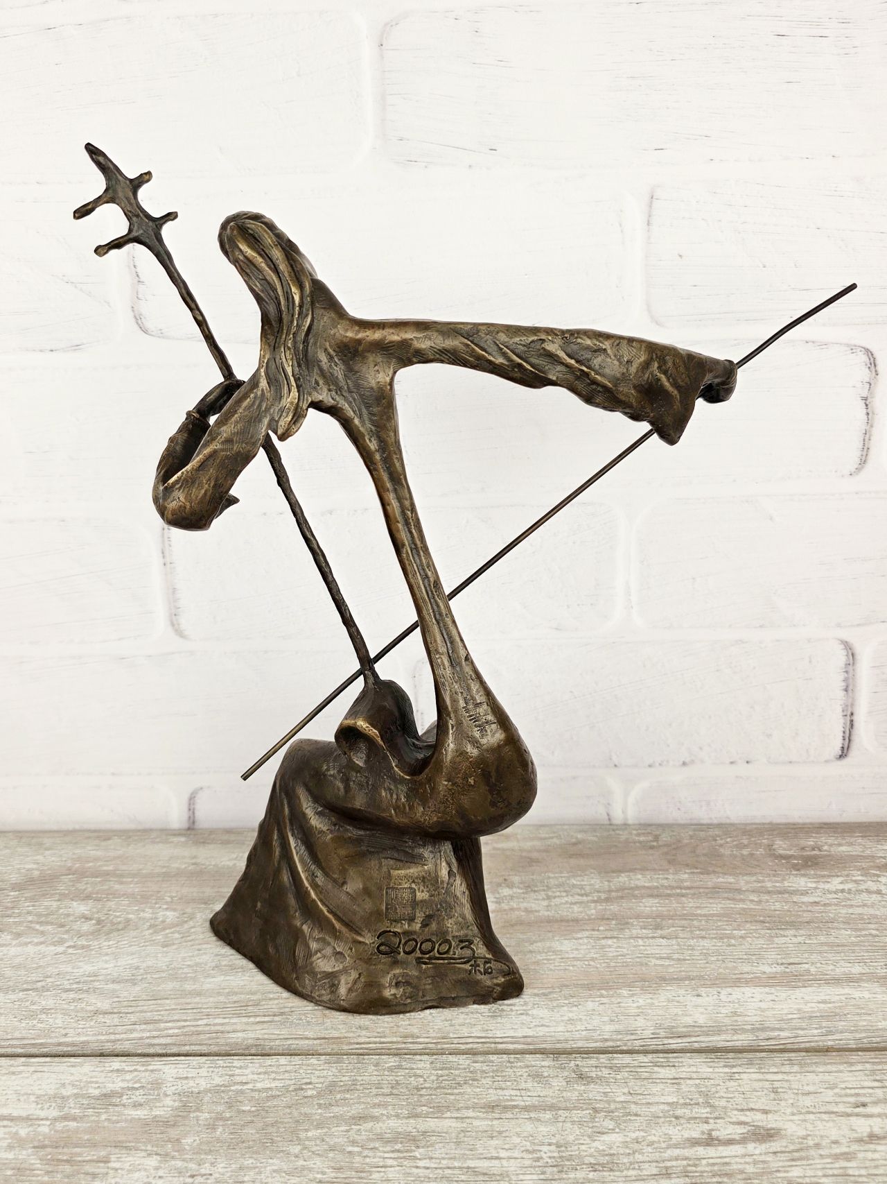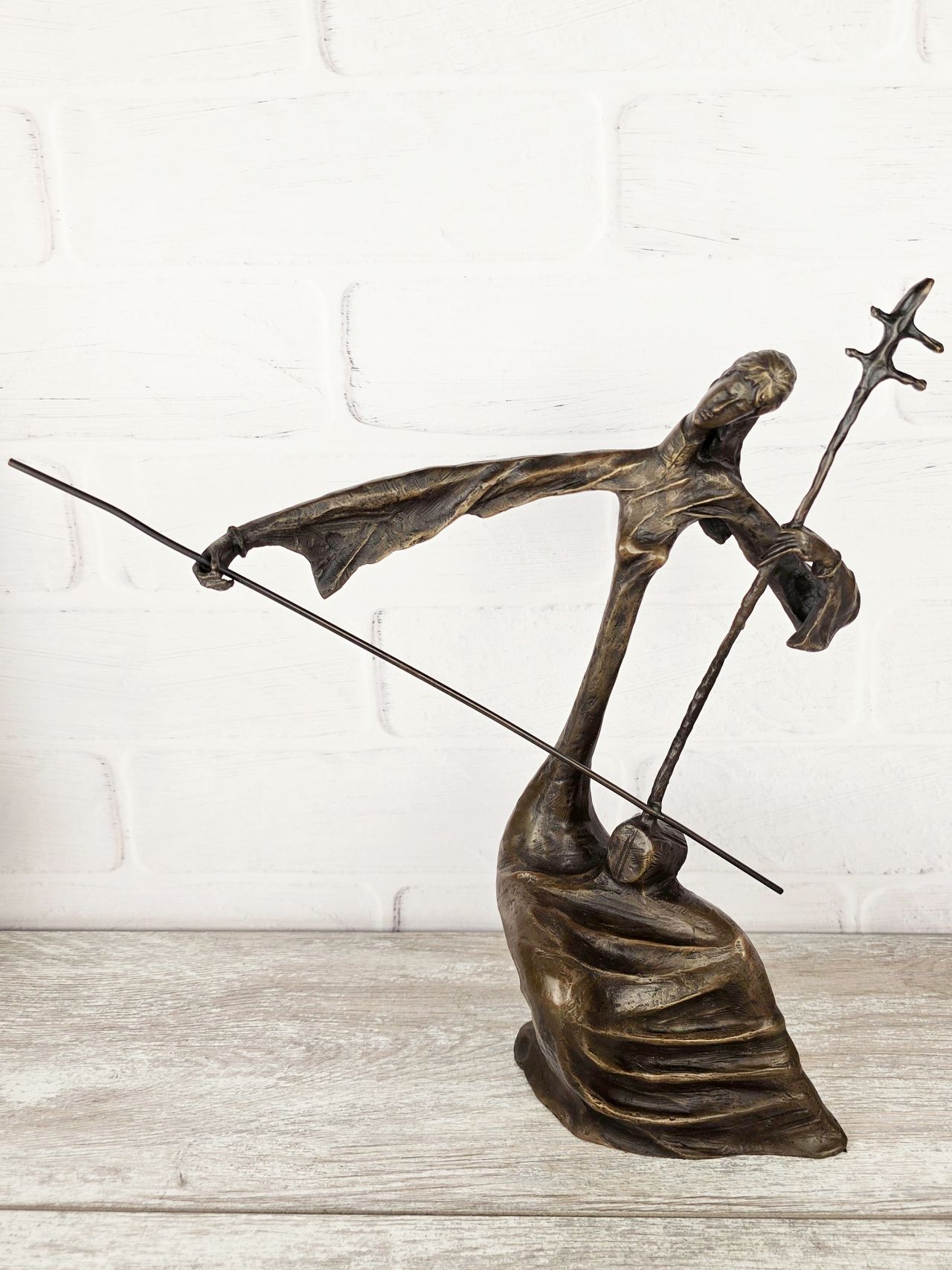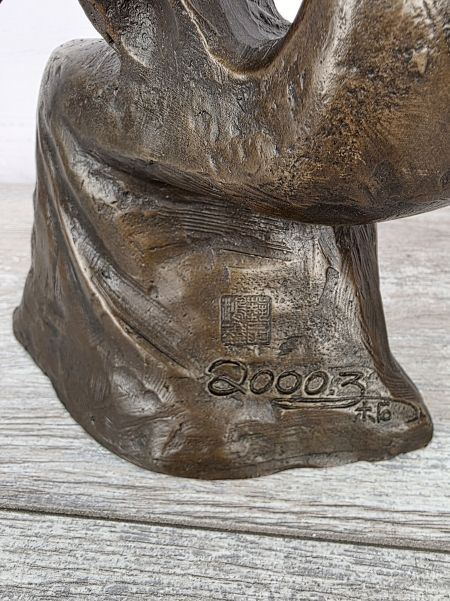 Достаточно крупная (37,5см) скульптура, относящаяся к современному искусству. Одна из серии авторских работ, датированных началом 20го века и изображающих восточных девушек, играющих на самобытных, архаичных музыкальных инструментах. Статуэтка не имеет каменного основания, выполнена полностью из бронзы (2,8кг)