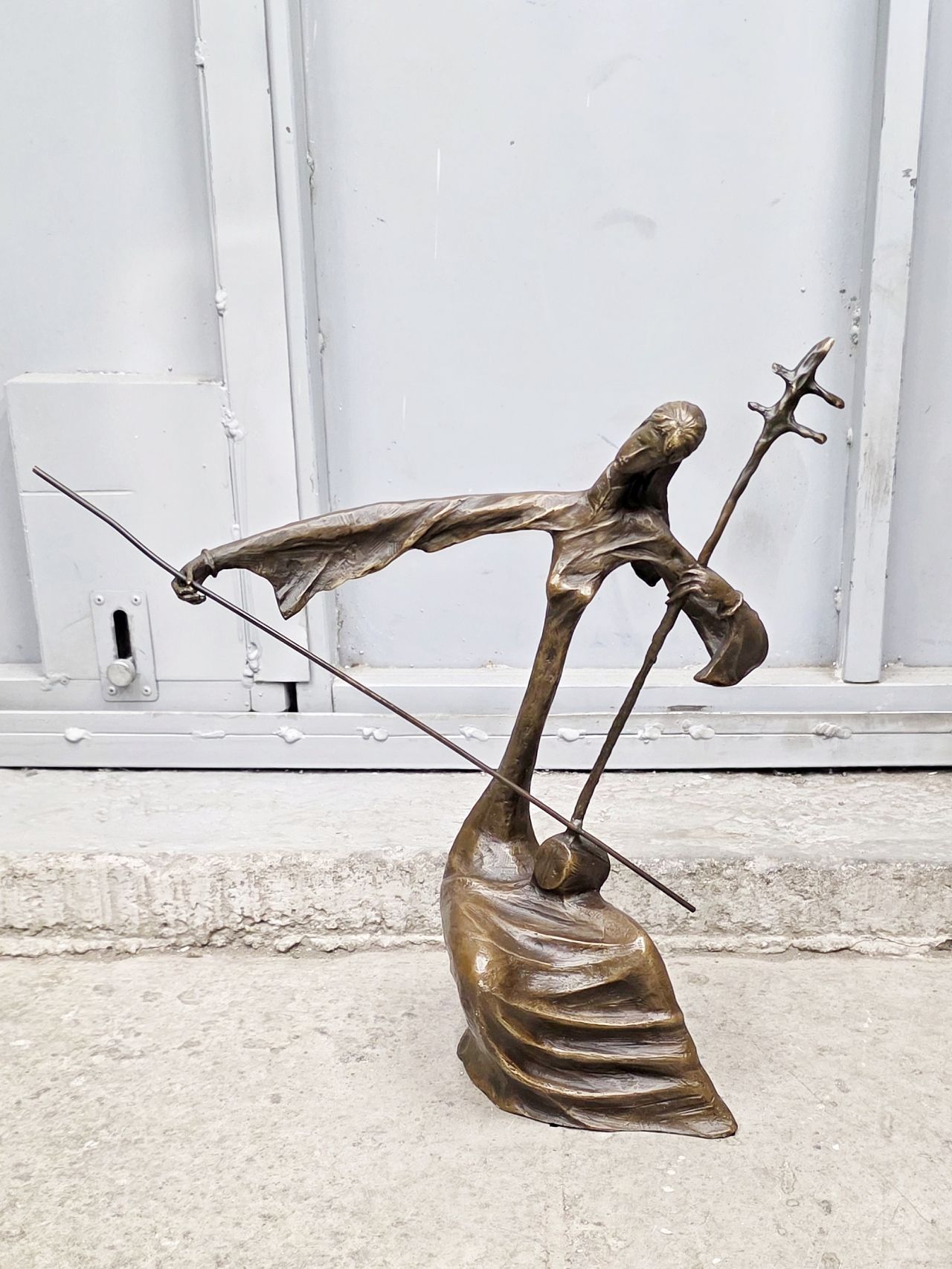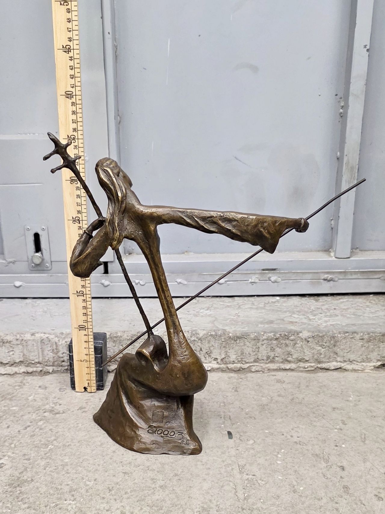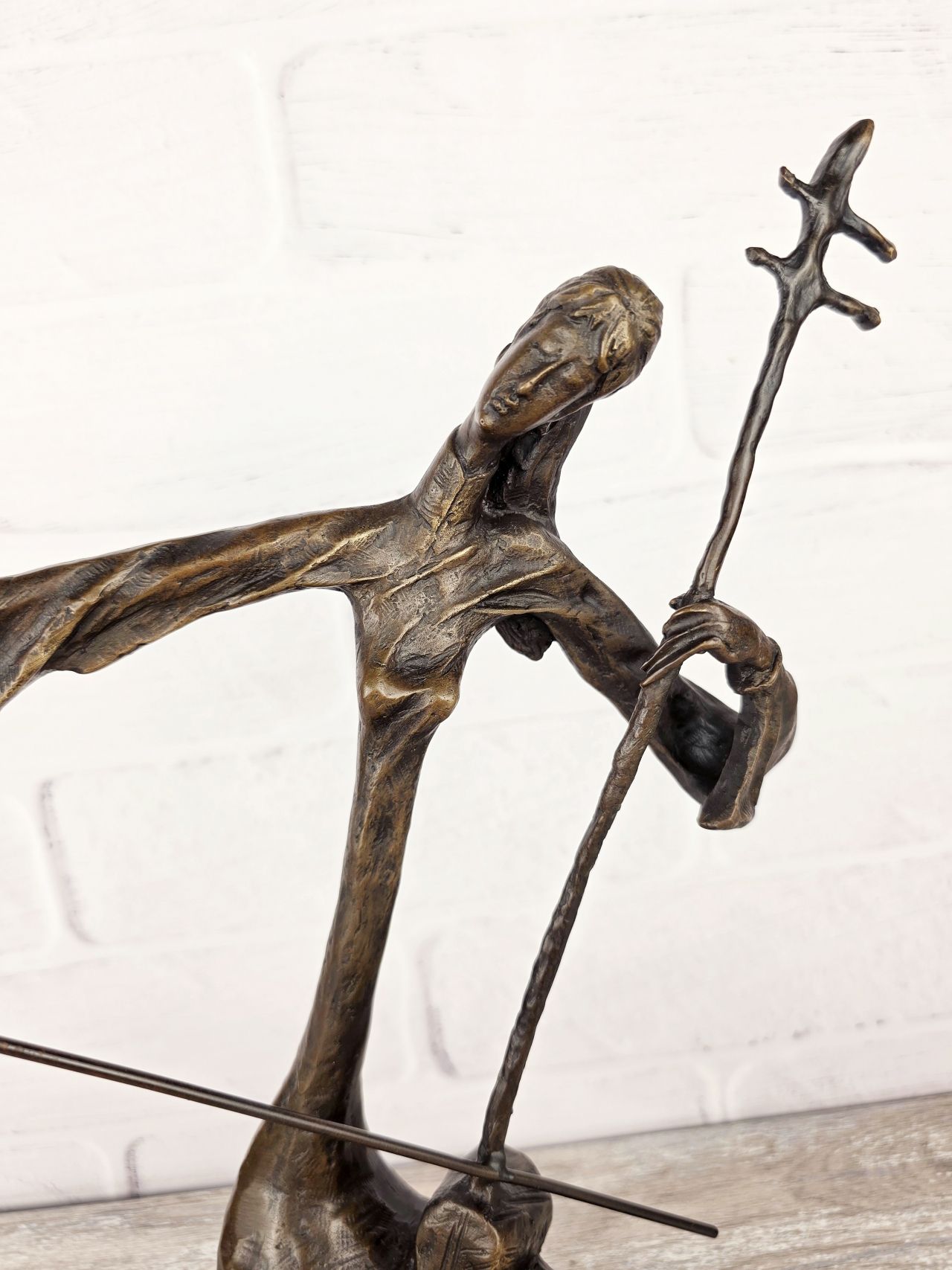 Достаточно крупная (37,5см) скульптура, относящаяся к современному искусству. Одна из серии авторских работ, датированных началом 20го века и изображающих восточных девушек, играющих на самобытных, архаичных музыкальных инструментах. Статуэтка не имеет каменного основания, выполнена полностью из бронзы (2,8кг)