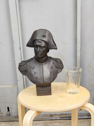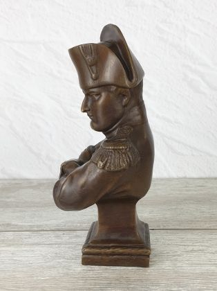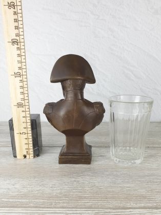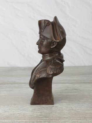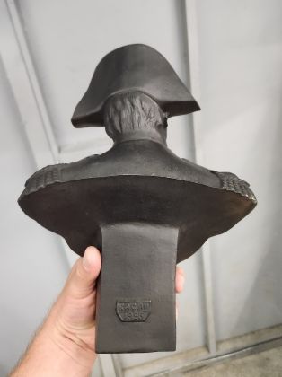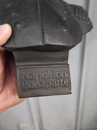 Буквы АЕК на оборотней стороне, предположительно означают инициалы мастера, сделавшего бюст.Для поклонников винтажного стиля мы создали серию бюстов, стилизованных под антик. Раньше не было современных технологий и материалов, никто не экономил лишний грамм бронзы, бюсты были тяжёлые, грубой лепки, чем и ценились. Наполеон Бонапарт - властитель дум всего XIX века, показавший, чего может добиться провинциальный лейтенант, обладающий интеллектом, силой воли и трудолюбием.