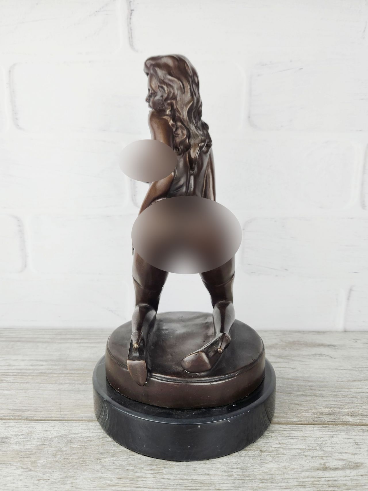 Крупная и объёмная (31см; 3,8кг) статуэтка обнажённой девушки, стоящей в крайне соблазнительной позе.