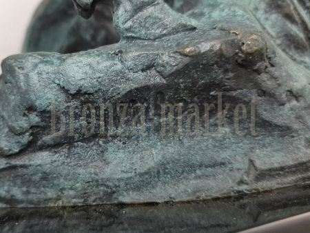 Скульптура достаточно крупная (36см, 11кг), покрыта зелёной патиной, что придаёт ей интересный декоративный эффект. Достойный предмет интерьера, отличный подарок охотнику.